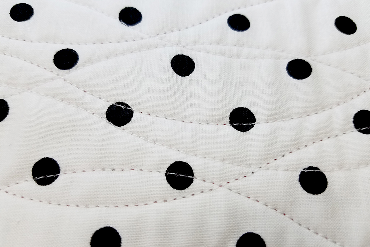 Place the first bag side under the foot with Needle Stop Down engaged and begin to move the fabric as you quilt.