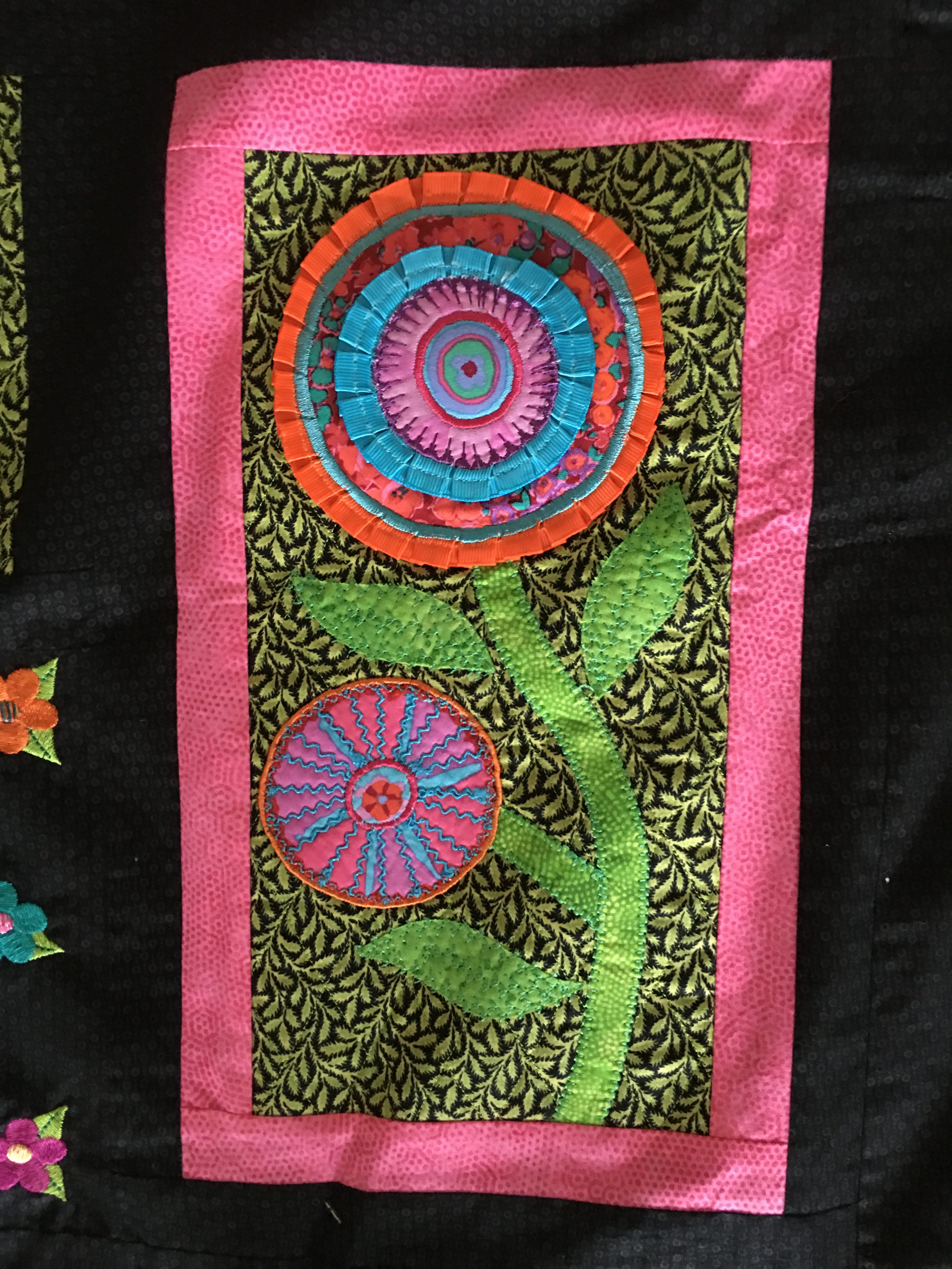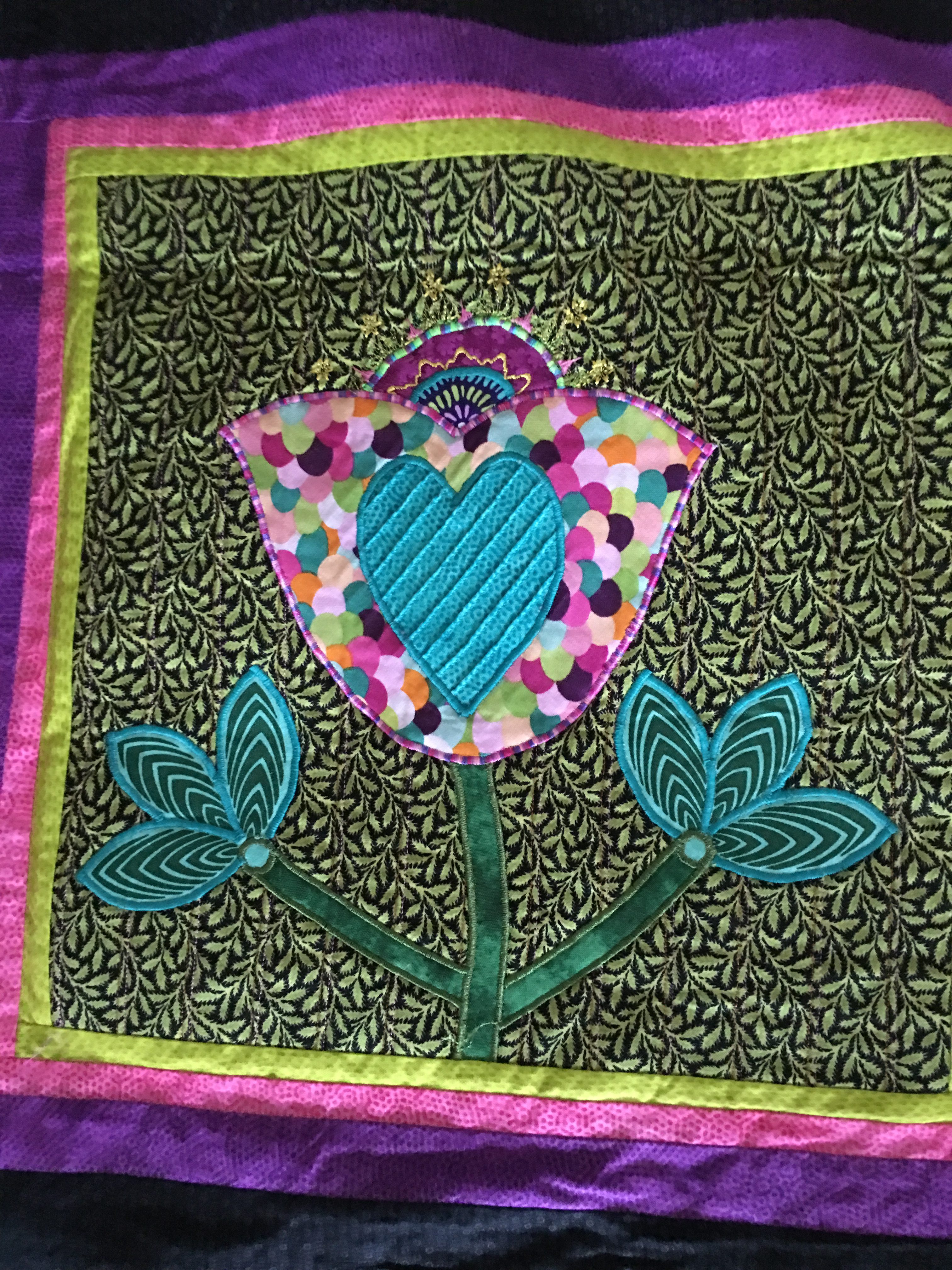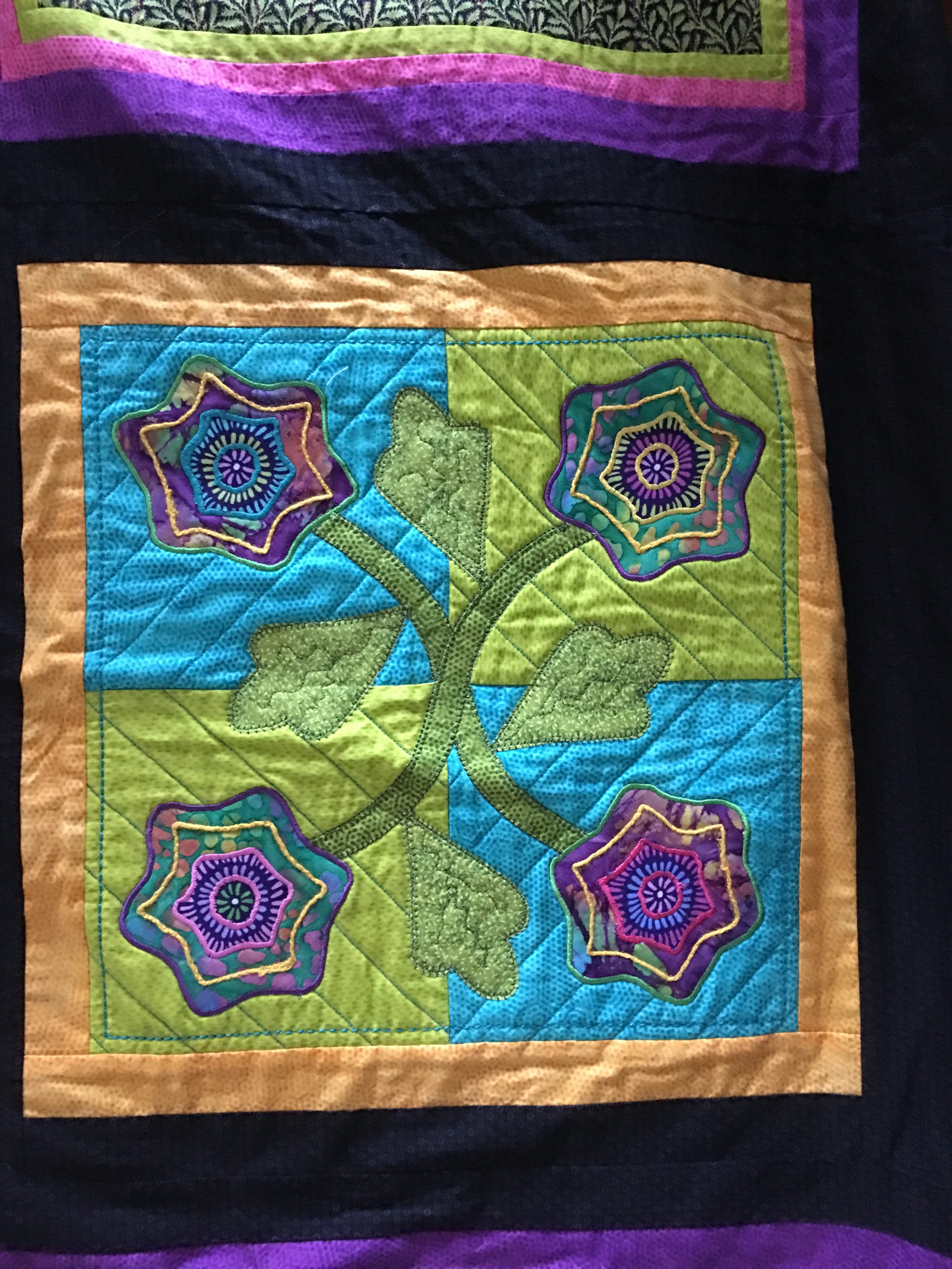 I live in a remote area, closest town is 25 miles away. A shop in this town offered a block of the month project to learn how to use each of the many feet the newer machines come with. The shop was a Janome dealer but they assured me they could help me with my Bernina and all the feet Bernina offers. After the first block, I knew I was on my own. I made the crazy decision to do two quilts of the same pattern at once so I would have a pair for my twin beds. I tried to do each different in fabrics and colors. I had to use Bernina and YouTube to figure out how to use my feet. The shop closed down before I could finish my projects but finally they are ready to quilt. Now I have to figure out how to free motion quilt. That’s the fun of these incredible machines. I did these two on both my Bernina Artista 730 and my Bernina 880.