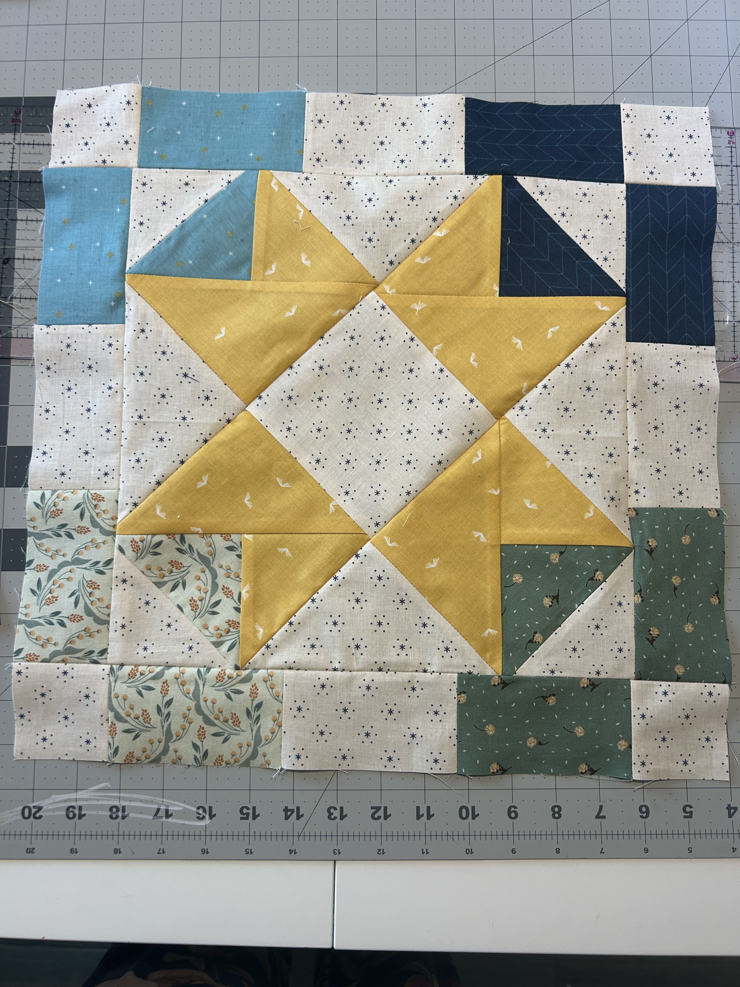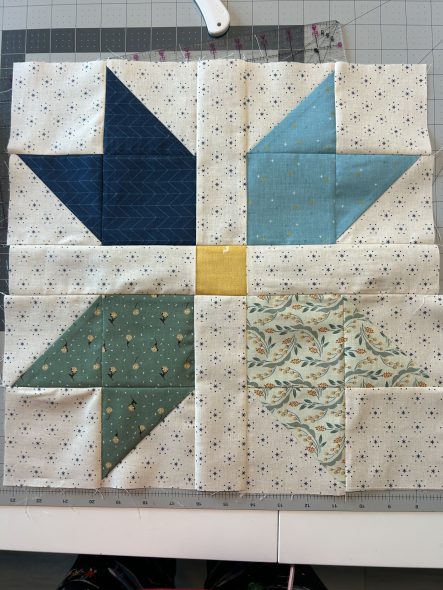 I ended up with a missing square and had to go buy more fabric thank goodness they had it. Block 7 gave me a hard time but I got it done. Now on to the sashing.