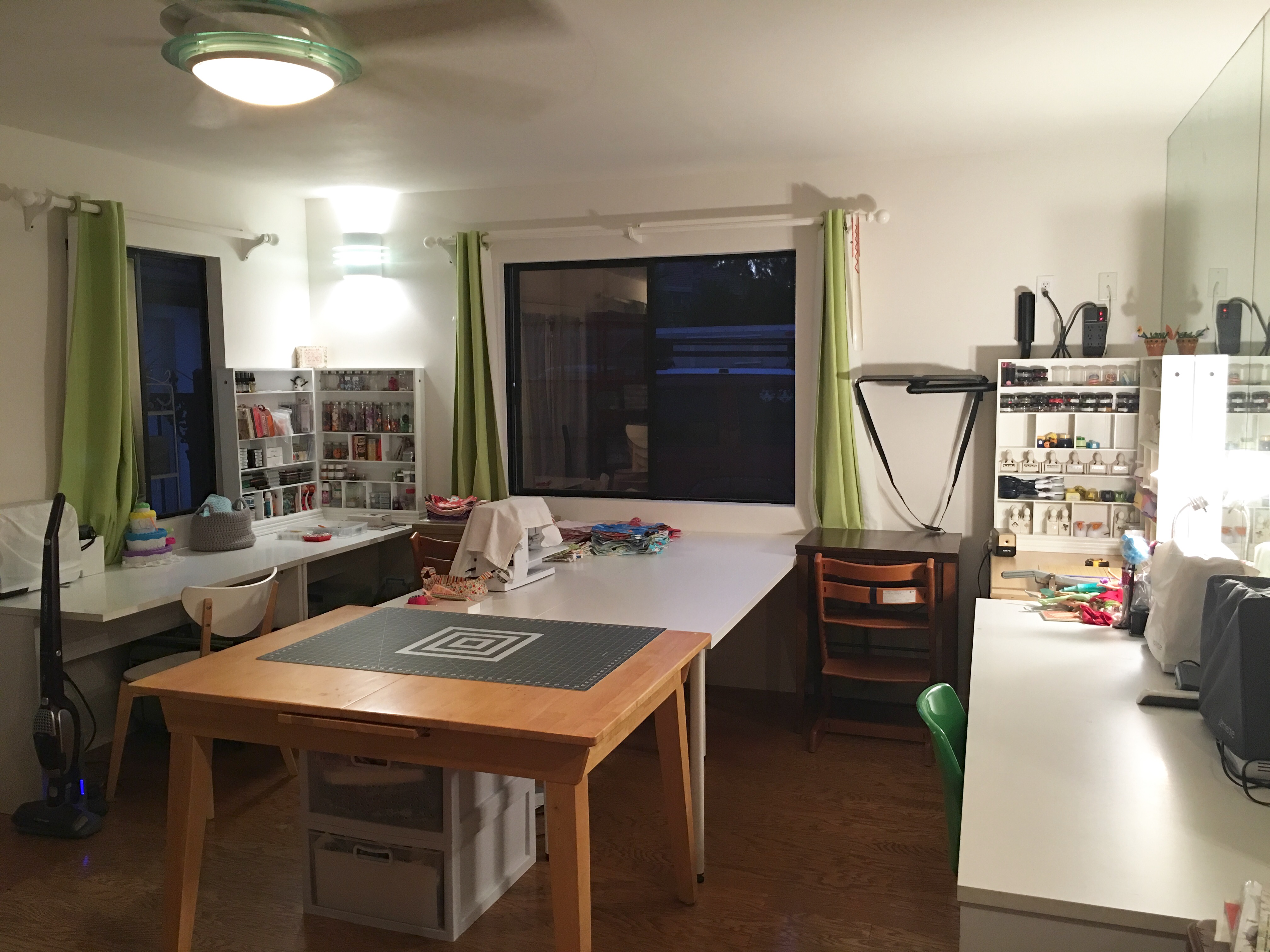 Our creative space is shared and regularly house three young (pre)/teens and one adult. Each of us has a designated sewing desk so our machines are at the ready. We also have a central space for the bigger projects but admittedly the room is usually a disaster. This doesn’t stifle the creativity! We have quilts and smaller sewing projects in process such as Chemo Caps, NICU smocks, Rare Bears and custom clothes for Monster High dolls. I especially love it when we are all in there together❤️