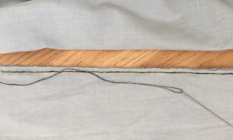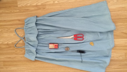 So I pull out my pack of tailoring pins, a scissors, tailors chalk, tape rule and most importantly a black thread and a large size needle.