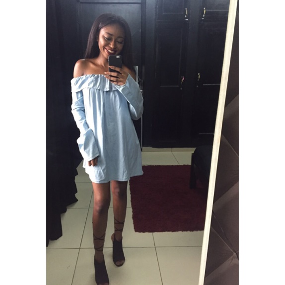 Remember, if you have been looking to buy this really gorgy off shoulder top or dress but it is a tad bit too expensive, look no more. Transform that old flared skirt or that old flared dress with an elastic band into what you want. Thank me later.