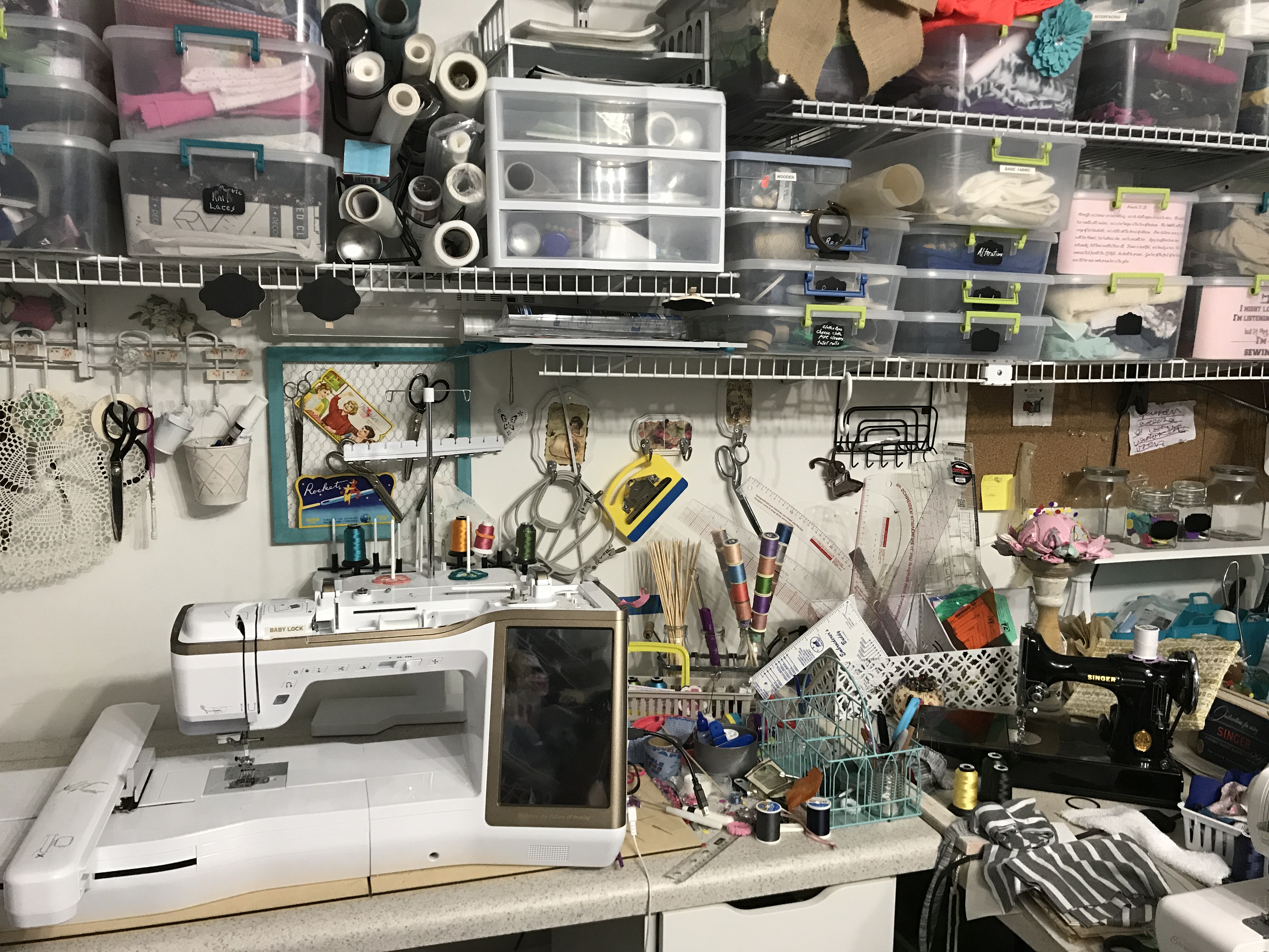 Seeing this space just makes me want to know more about you and your projects! Just looking at this picture I would like you were a very artistic person, and for some reason I see an art quilt or two. I could be totally wrong but that what I think of when I see the picture of your space.