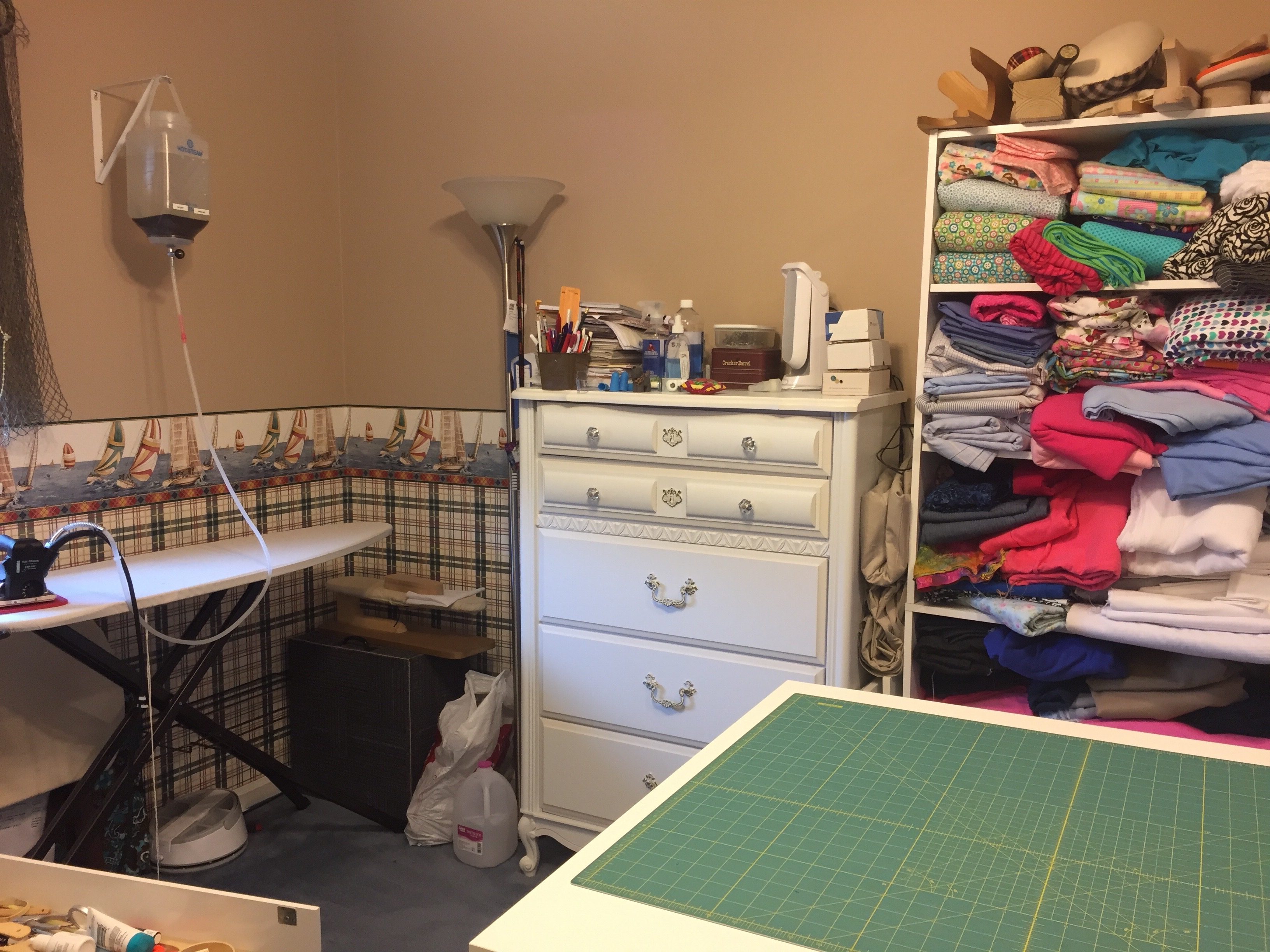 I retreat to my favorite room almost every day! It may look messy to you, but this is actually one of its cleaned up times. ? It’s a small room, but I am so proud to have a space dedicated to sewing. I worked my adult life raising children, and now that they are grown and gone, I finally have a place of my own. A place to do what I love. Sew!! ?