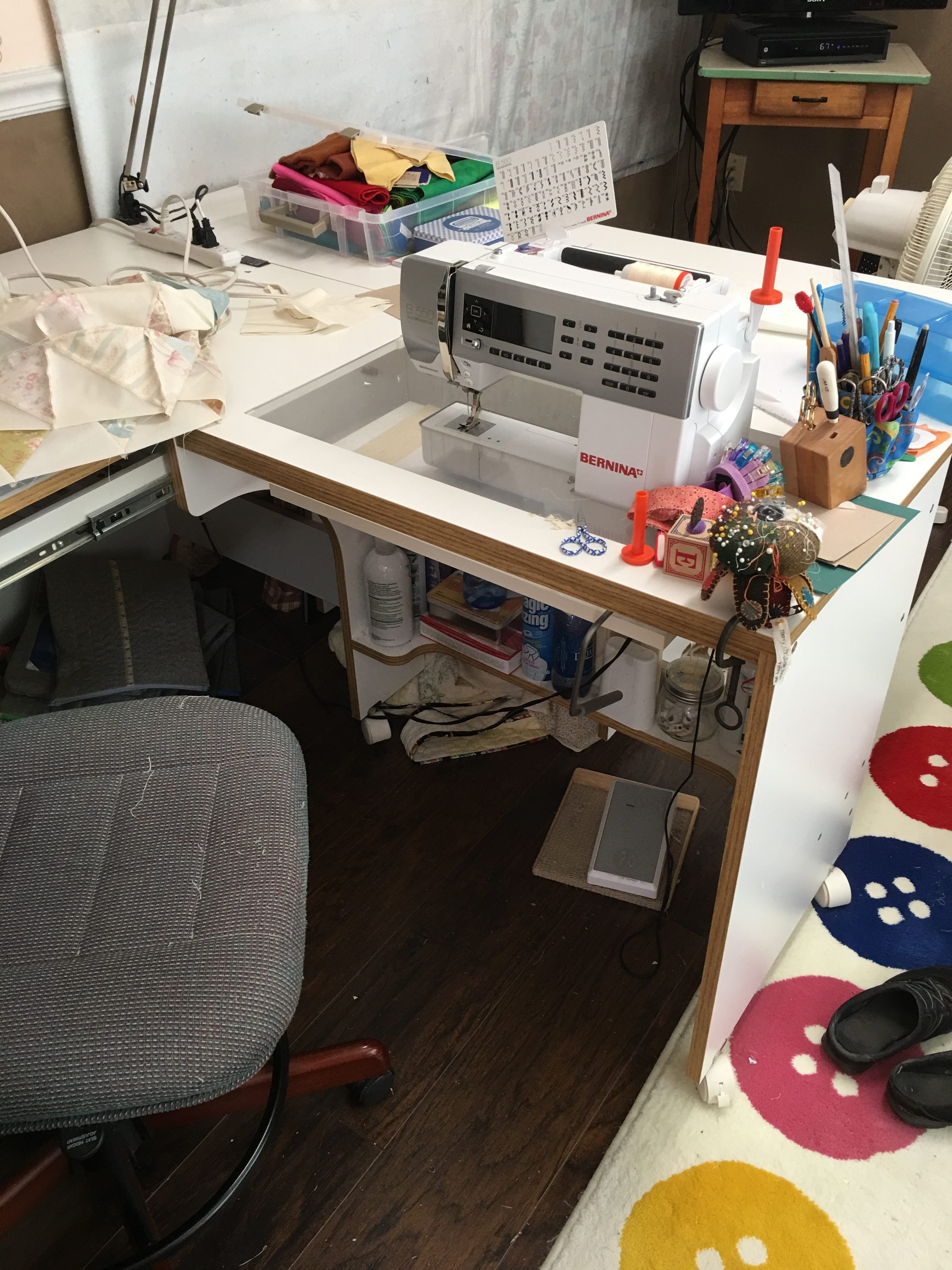 My sewing space . When I bought this home many years ago I required a sewing space so I trNsformed the formal living room to a sewing room.