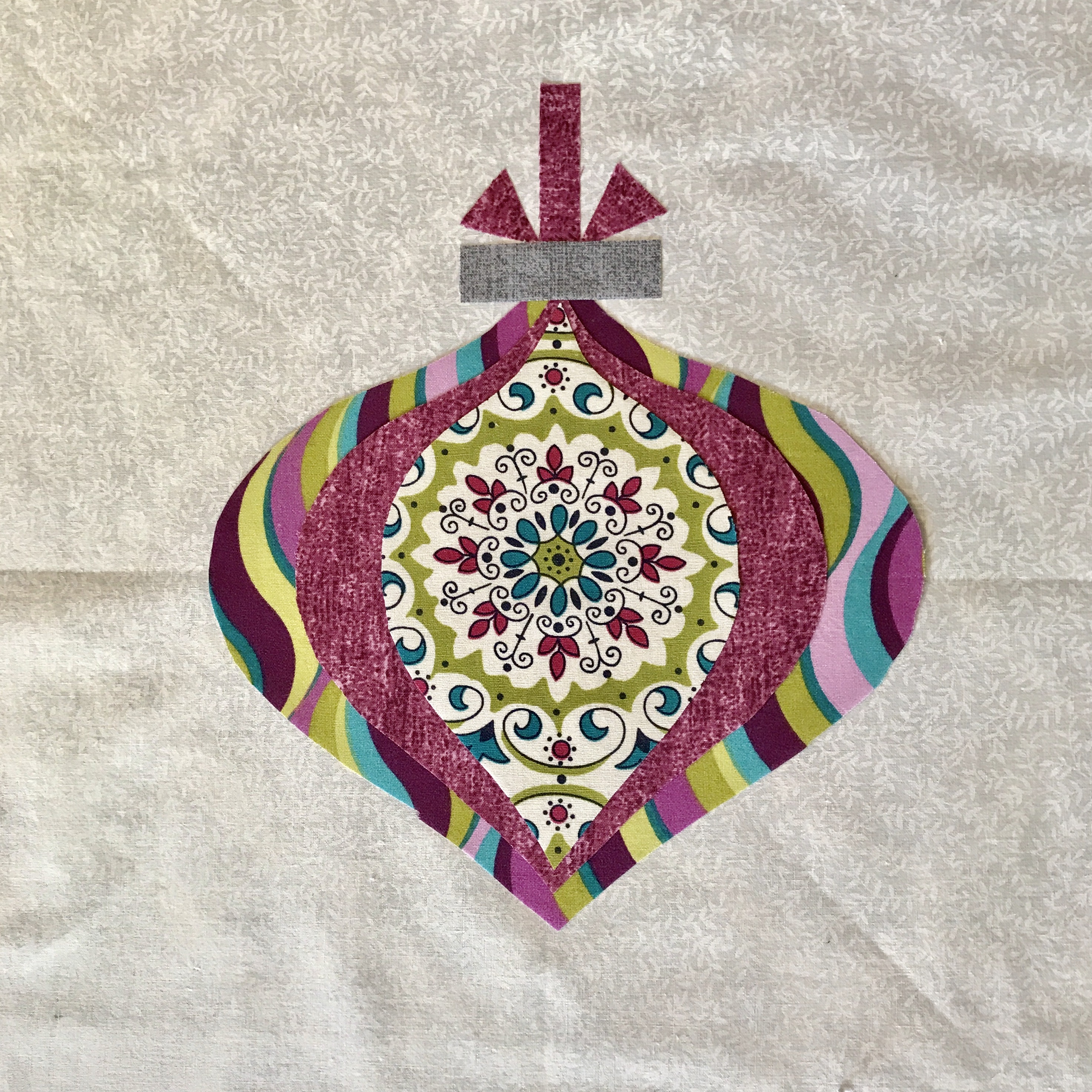 My first and only Vintage Ornament block. I am just using the one as a center panel and will ring it with 4 patch blocks.