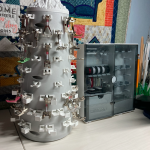 The irony of the universe. Even while I was entering the contest for the gold presser foot and presser foot mountain tower I was thinking: “Good thing I really don’t want this because I know so many people are entered.” So I was very surprised when notified I won and to expect the package to be shipped to me. All the while I was feeling guilty because I could not imagine using it. I share my sewing space with my husband’s office so the only place to put the tower would be on my sewing table where I am constantly aggravated by the need to shift things around in order to bind a quilt, or set up the embroidery module, or more commonly to get in and clean out the bobbin area. It is hard to find a place to shift things to and this Swiss Mountain foot tower is just one more thing when I already had the feet safely out of the way in a foam case on the floor at my feet. Too often my piles shift into an avalanche or the cat knocks them to the floor and all I need is to be trying to find all the presser feet when the tower gets knocked over.