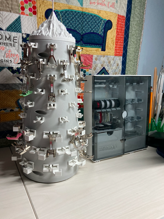 I have the mountain and love it. I use to get frustrated looking through my little Bernina boxes. I own several..Now All my feet are right by my machine,I can see the number, and it’s very stable. I’m just a happy Bernina Girl‼️‼️‼️‼️