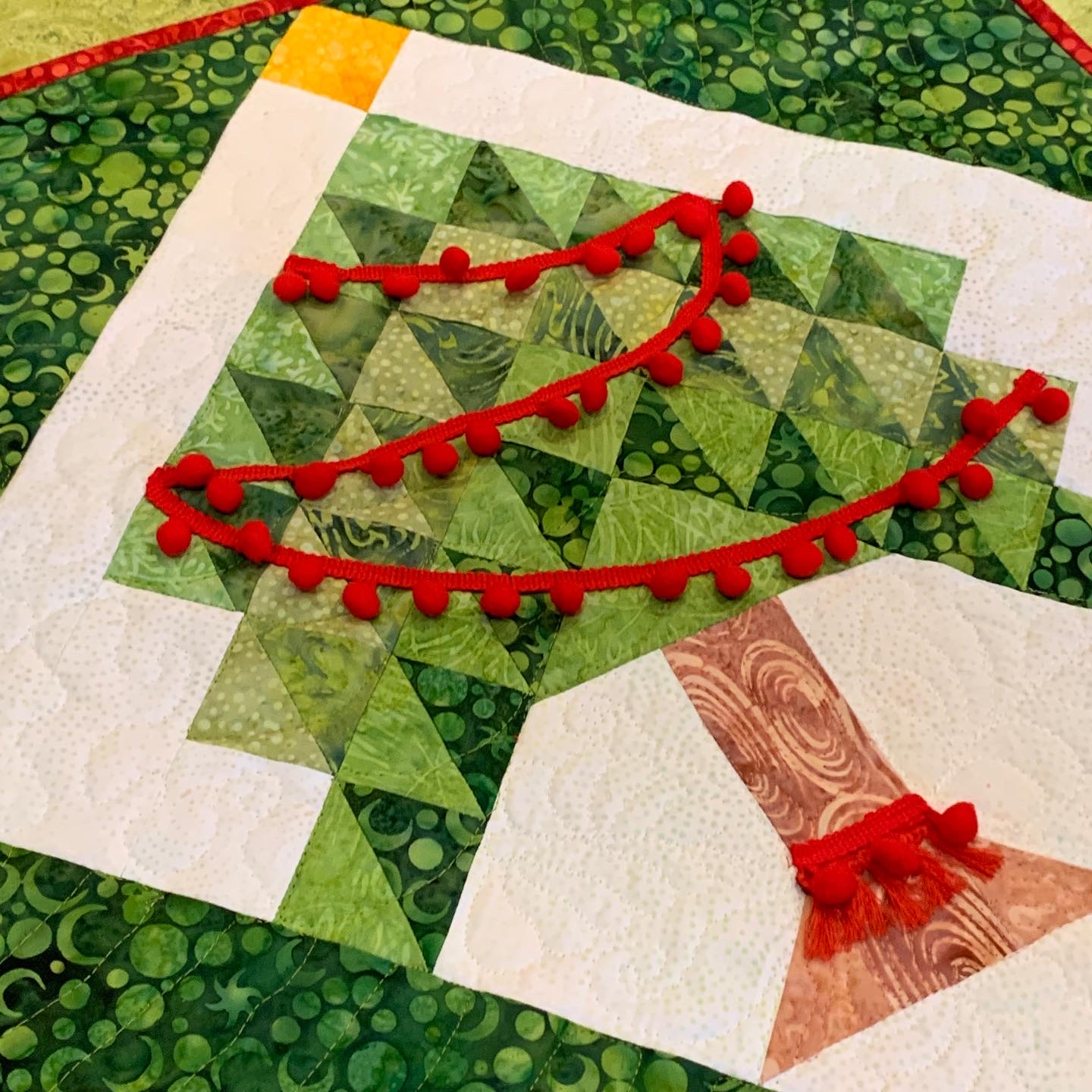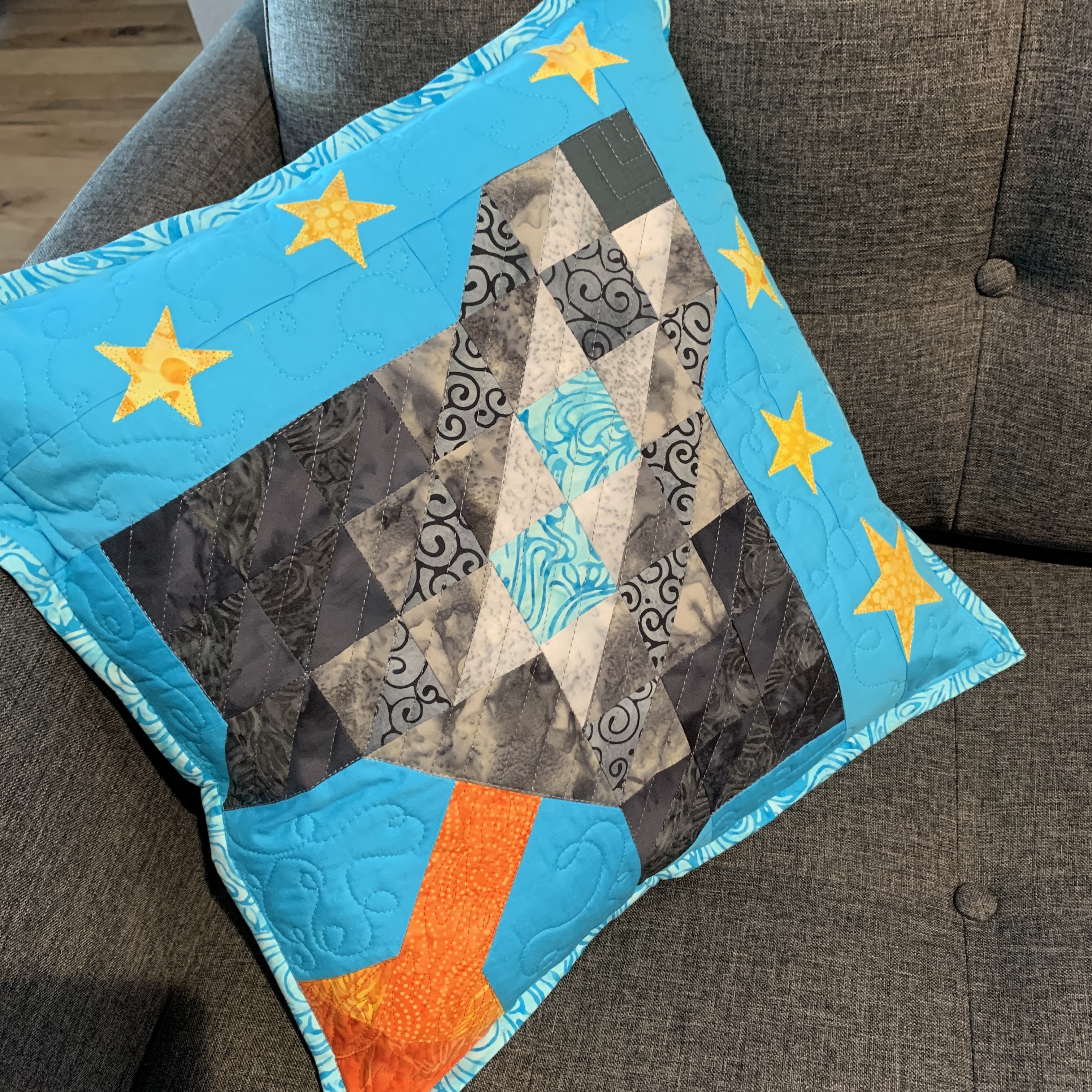 I made this pillow and wall hanging using the Accuquilt Tree Of Life die. I redesigned it to make a spaceship and Christmas tree.
