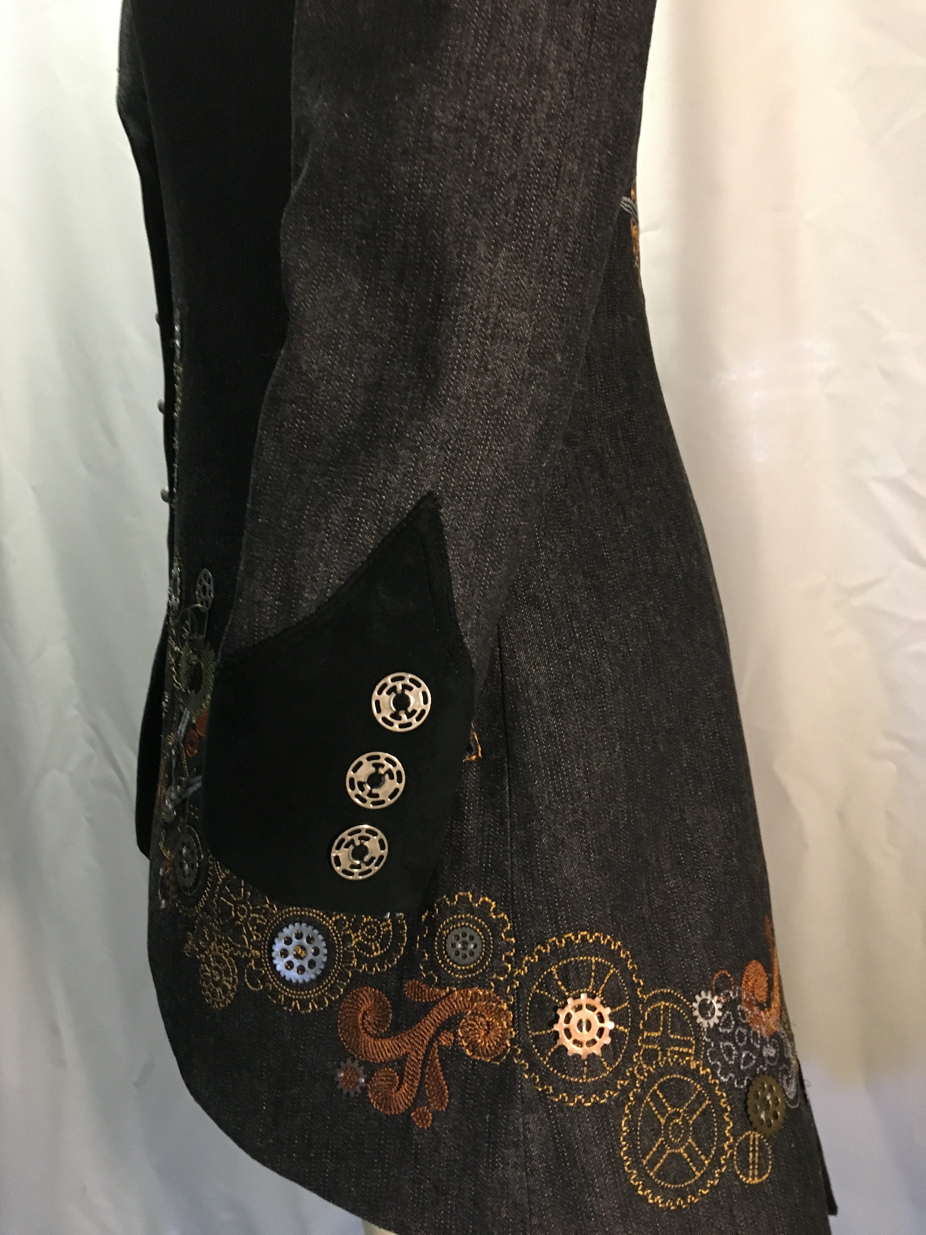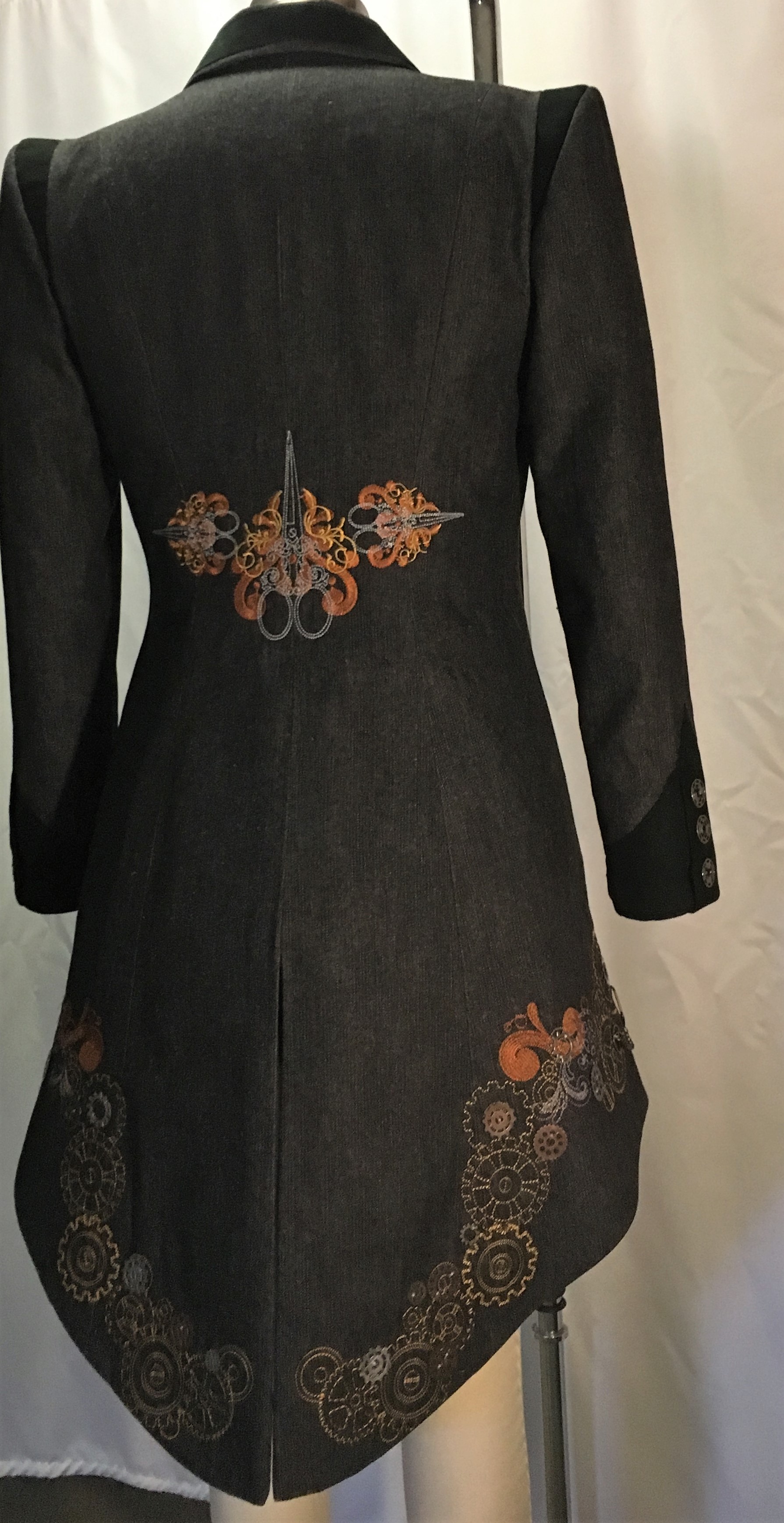 This jacket is amazing, beautiful. I’m a fan of steampunk but the cut of the jacket fantastic with the embroidery. Bravo!