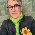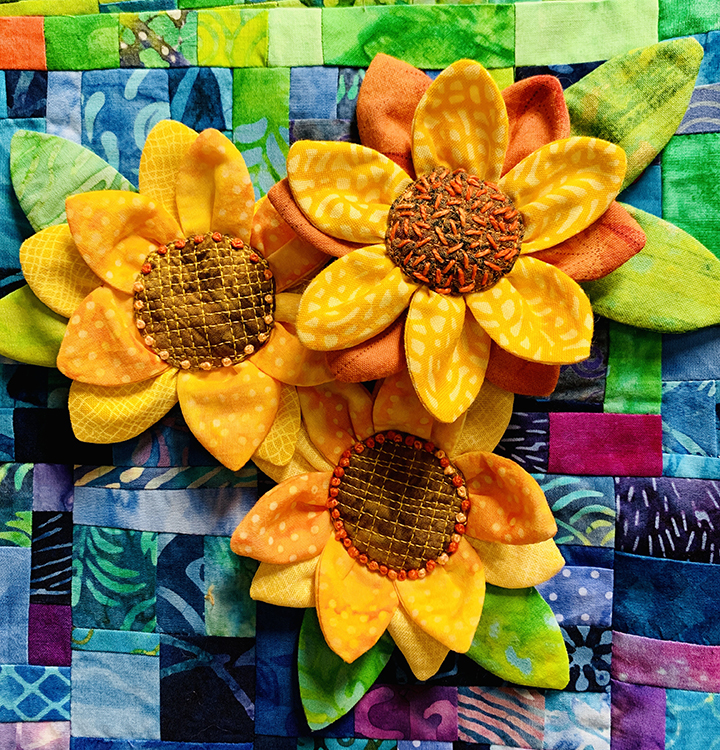 To raise money to help Ukrainians, I created a pattern for this sunflower pin. The sunflower is the national flower of Ukraine.