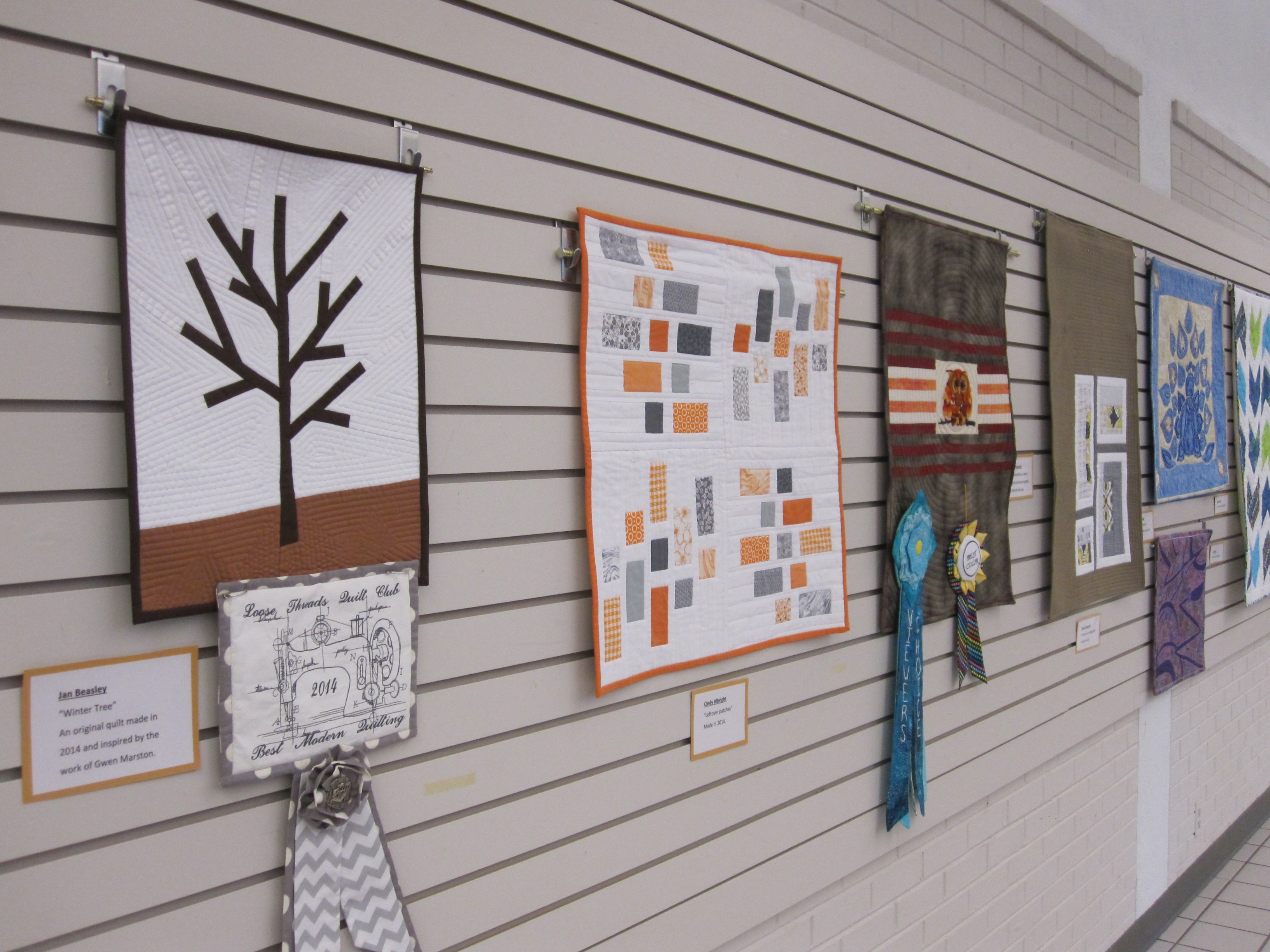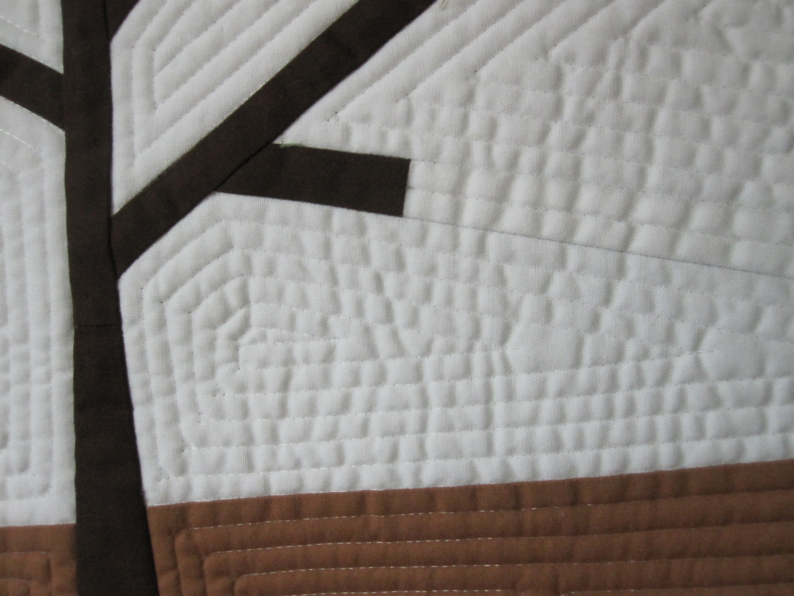 I had admired the cover of a book by Gwen Marston, but I had not had a chance to see the book.  I love images of the trunk and branches of trees, so I decided to try imitating Gwen’s quilt to enter in a modern quilt challenge by Loose Threads, my local quilt club.  I used my walking foot for the quilting.  Making this quilt definitely was a challenge to my abilities, but I was pleased with the result.  All of the quilts were hung for display in our local library, and some were awarded handmade ribbons.  ‘Winter Tree’ was awarded the ‘Best Modern Quilting’ ribbon.