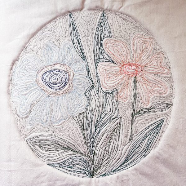 I don’t know if you remember, but this is not the first time I talk about free-motion couching fibers here. Last year, we did a Fiber Couching Cushion Cover. It was a very cool home decor project. We used the couching fibers technique to outline a leaves design.