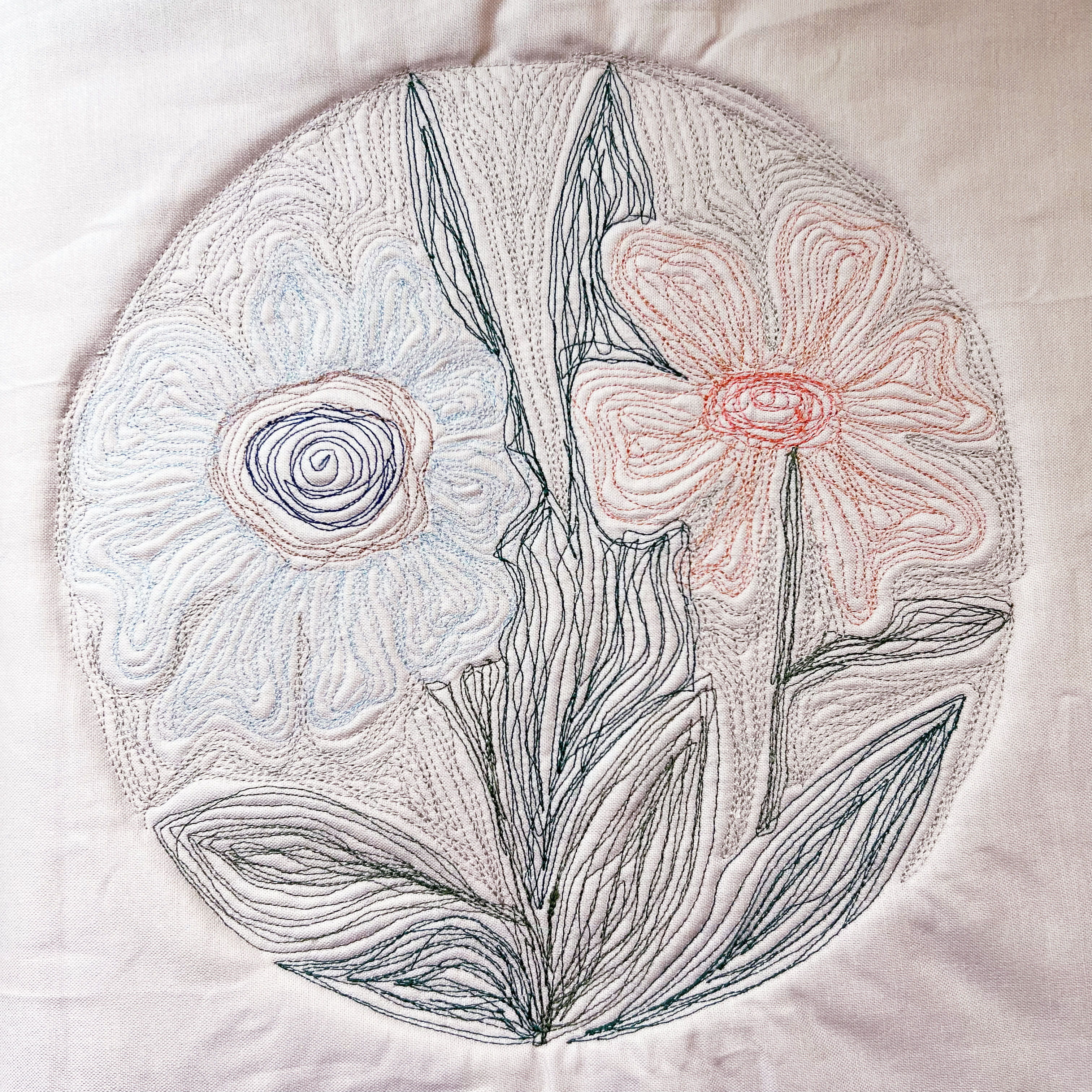 • Aurifil 50wt thread in colors: 2784, 2340, 2715, 2225, 2215, 5016, 4026, and 5011