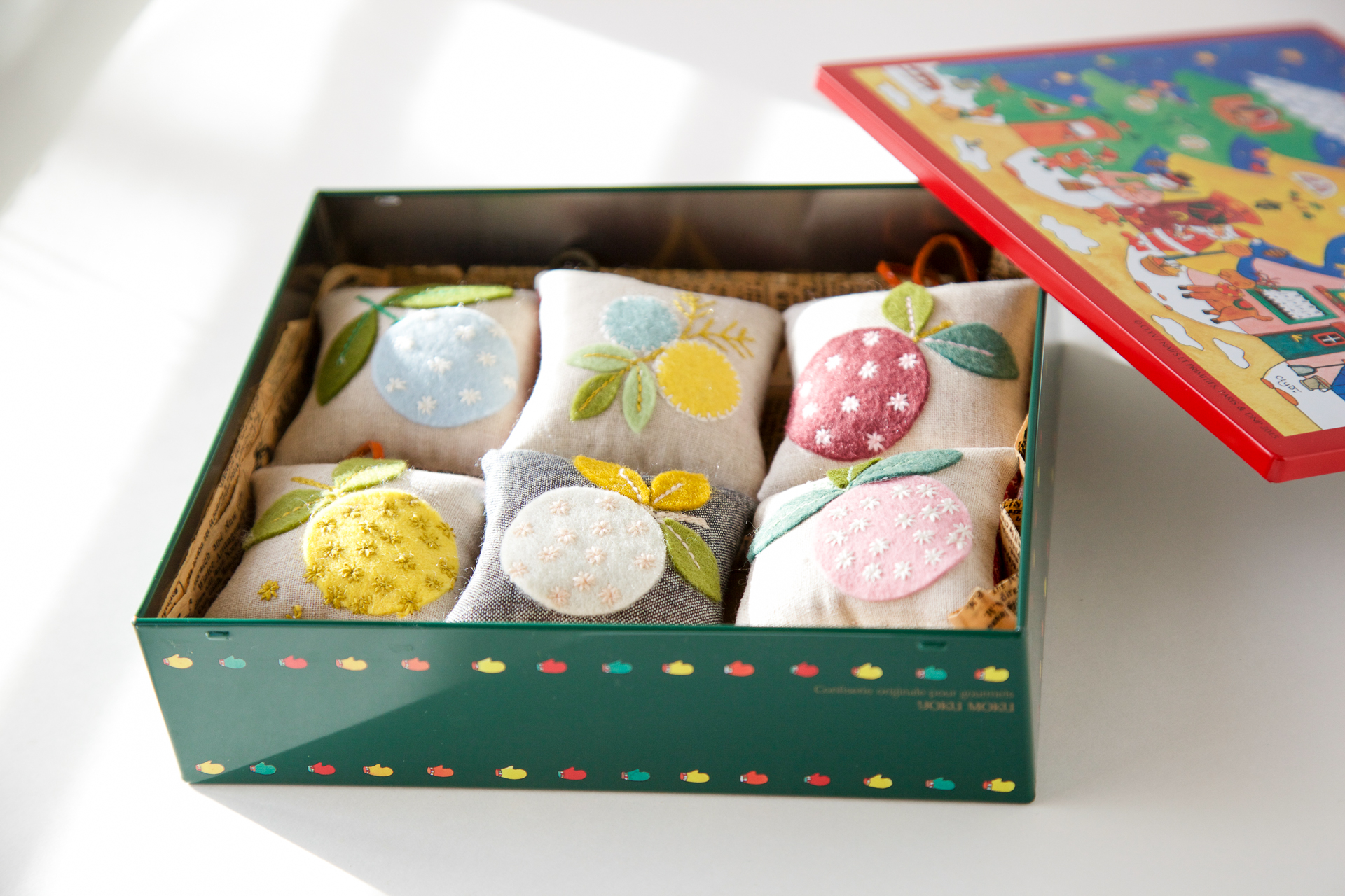 I hope you enjoy making this cozy gift for someone special. You can create your own pattern using spools or coins and add different shape of leaves. My Wool Felt Pincushion pattern is also available to download here.