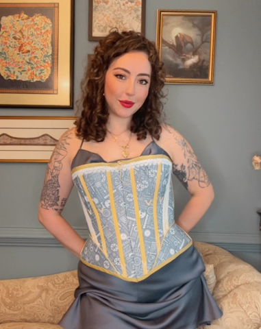 The fabric I used for this project is arguably not historically accurate in print; however, it is cotton, so that is historical! I want to thank Benartex for sending out these fun samples of branded fabrics for us to use, and I had a blast making this corset and using it as a way to introduce myself to my fellow 2024 Ambassadors.