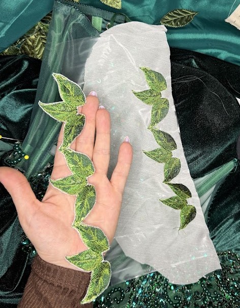 I then went ahead and hand-sewed each leaf cluster in front of the TV. I think the whole costume turned out beautifully, and I love that I was very easily and quickly able to make a trim that was unique to the concept in my head and something I didn’t need to shop online for! I highly recommend trying out your favorite embroidery as an appliqué! I know that this will be a technique I will use over and over again, especially as I make a lot of historical clothes, and having the ability to create my own unique embroidery just makes the costumes extra special!