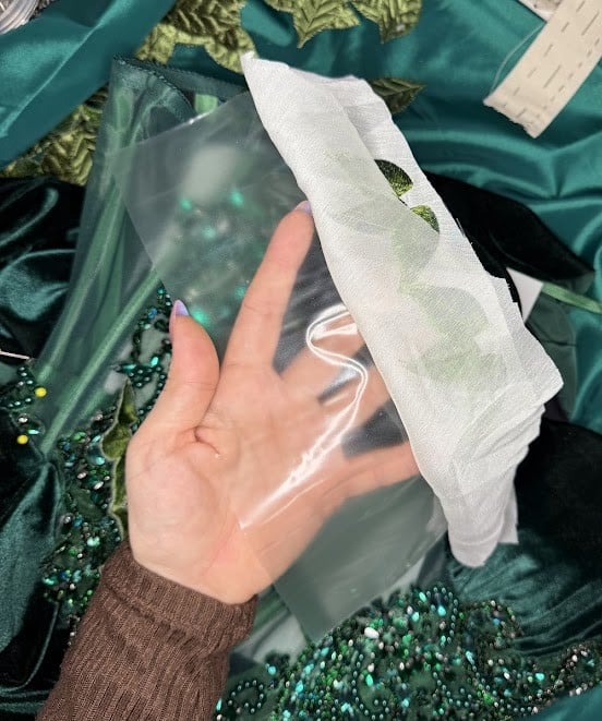 I like that when the design is done embroidering, it takes you right back to the beginning, so I could just rehoop and go right from there! This was especially lovely as I think I embroidered 9 panels in total for this project. Once they were done, I found it easiest to cut the excess stabilizer and organza away and then wash away the remaining stabilizer from the backing. Keeping the stabilizer on while trimming just helped when cutting the organza, as sometimes that can be an annoying, flimsy material to cut over and over again! Once the stabilizer was washed away and my embroidery dried, I ironed it flat, and behold! I had a beautiful, flexible custom embroidered applique for my cosplay!