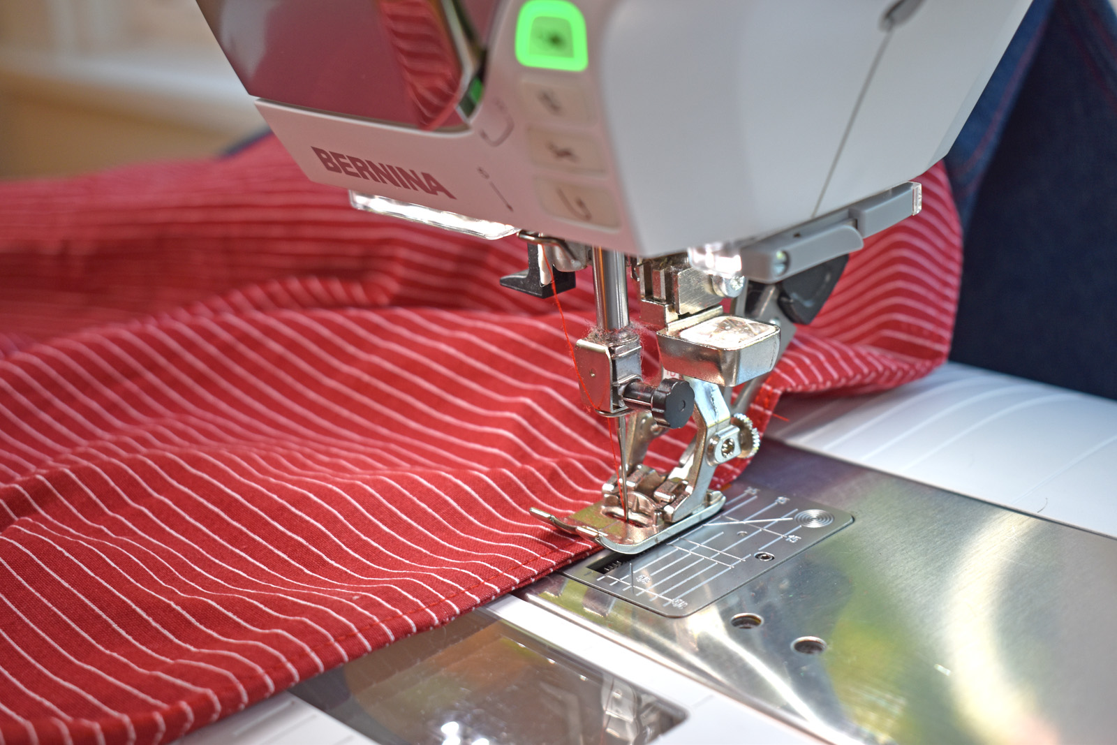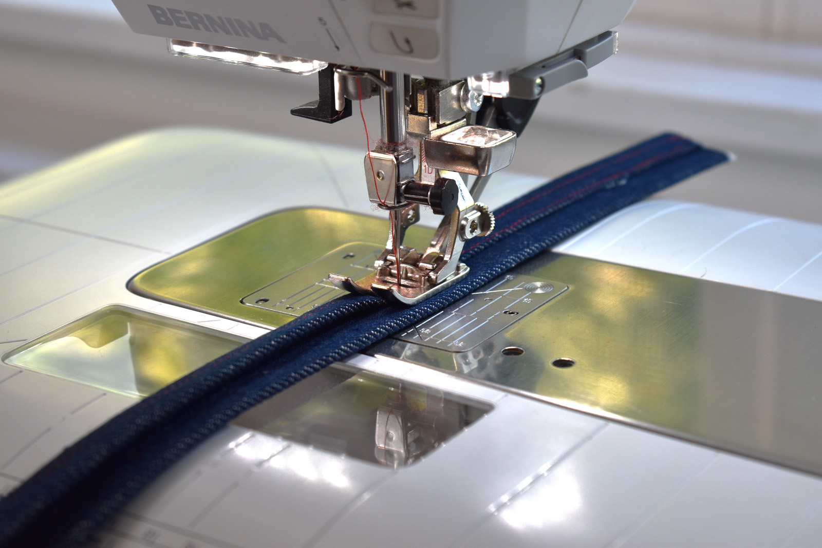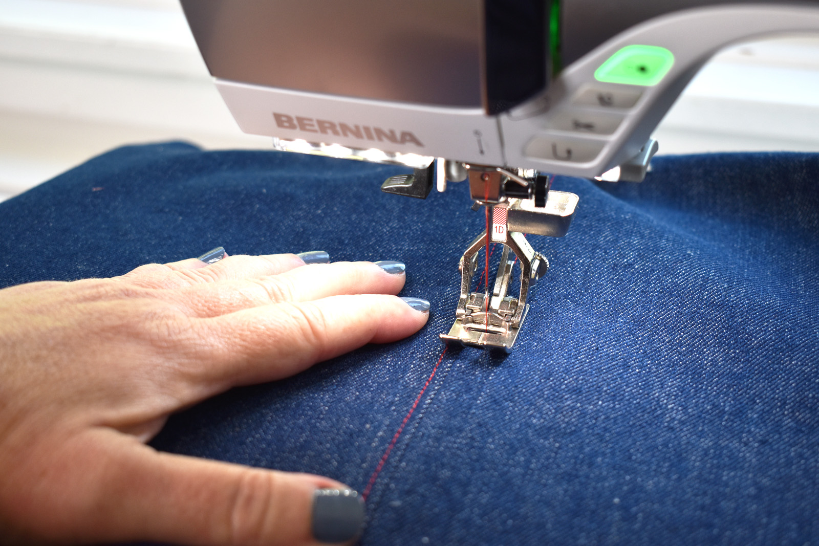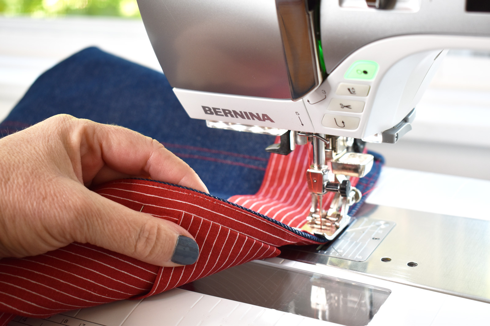 Use the Straight Stitch Needle plate and Reverse Pattern Foot #1C/#1D (the Jeans Foot #8/#8D will also work) and thread your machine with the 100% polyester 40 wt thread. Stitch this project with a straight stitch and 1/2″ seams unless otherwise noted.