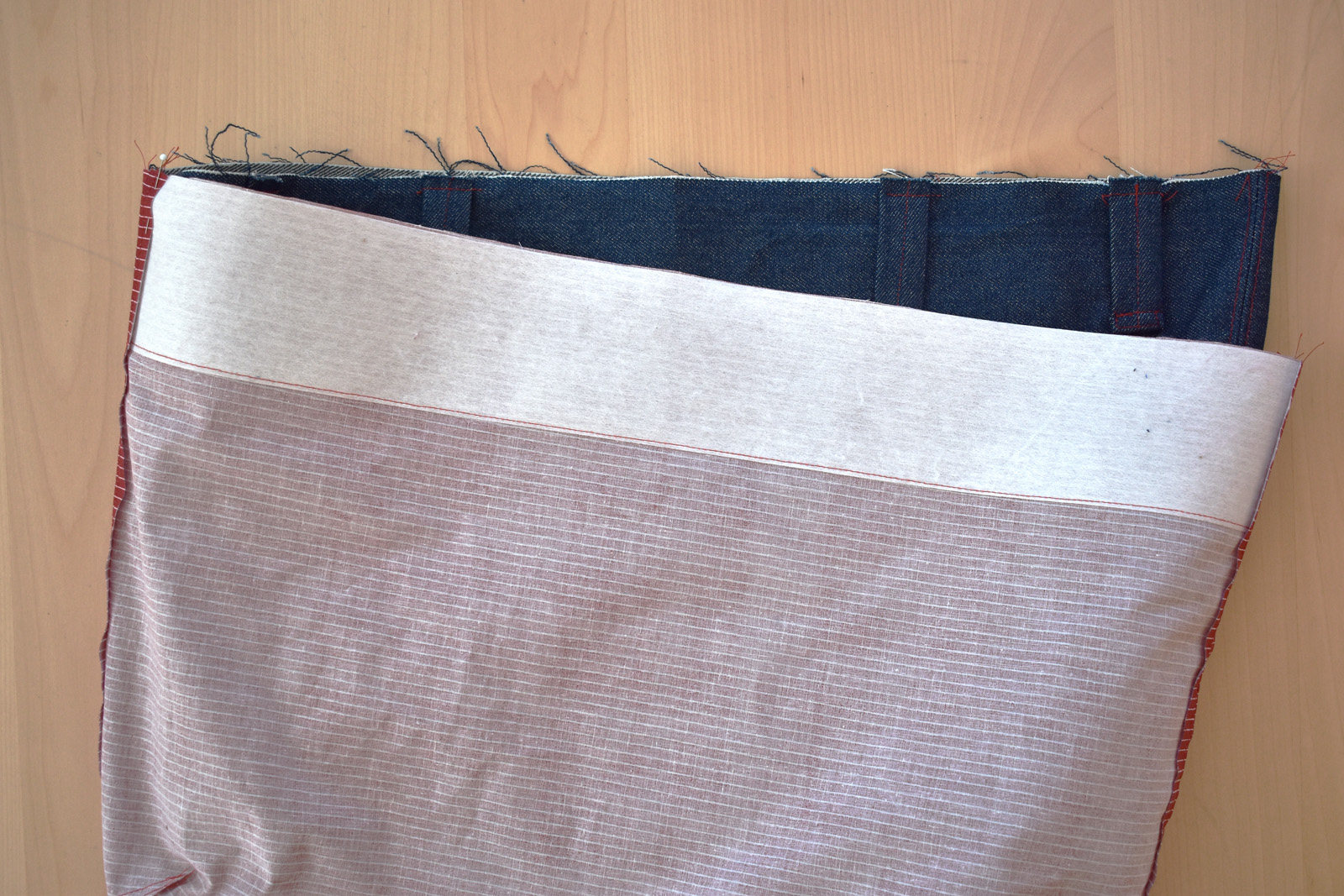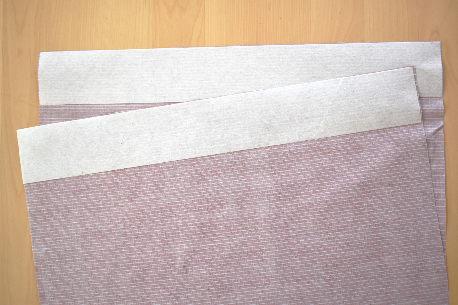 Following the manufacturer’s instructions, fuse the Pellon Craft Fuse strips to the top edge of each bag lining piece.