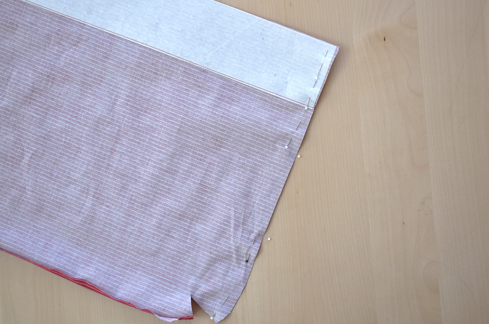 When pressing the side seam with the opening, press the seam allowance over 1/2″ on each side. Stitch these seams flat following the same steps as above, sewing on each side of the opening as you stitch down this side. Set the completed lining aside.