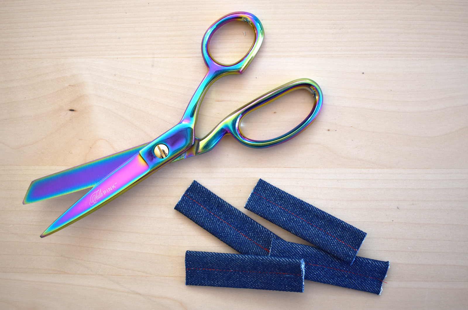 Cut the long tie loop strip into 4 equal pieces, each should be 3″ long.