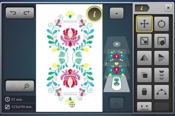 Undo is your friend! Have you ever touched the wrong button and ended up with an unwanted change? No problem: simply touch Undo and the booboo is fixed! You can also Redo steps while editing or combining designs to return to your previous position.