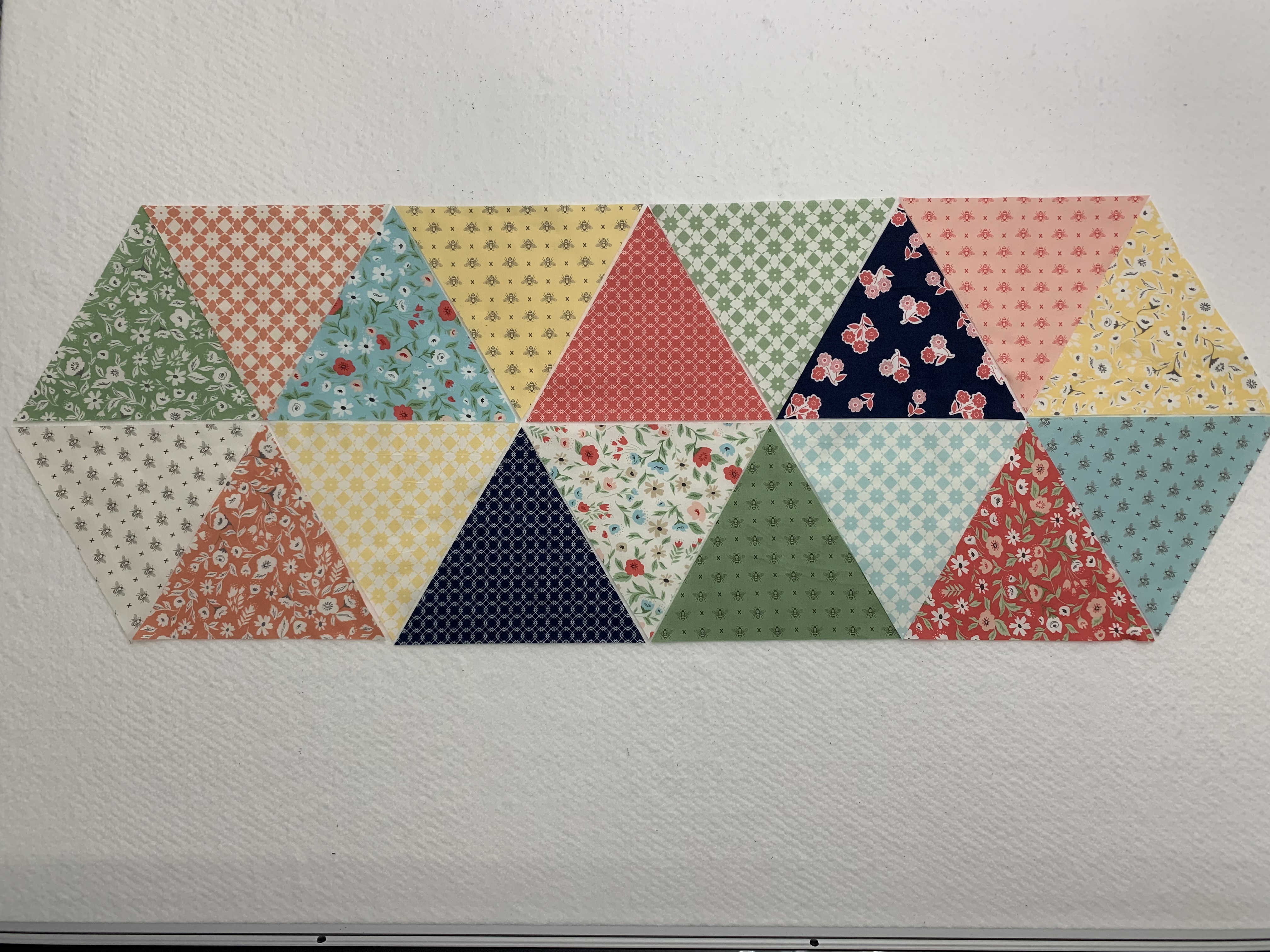 1. The Good Measure 60 Degree Triangle Ruler by Kay England is used to make this fast and easy table runner.