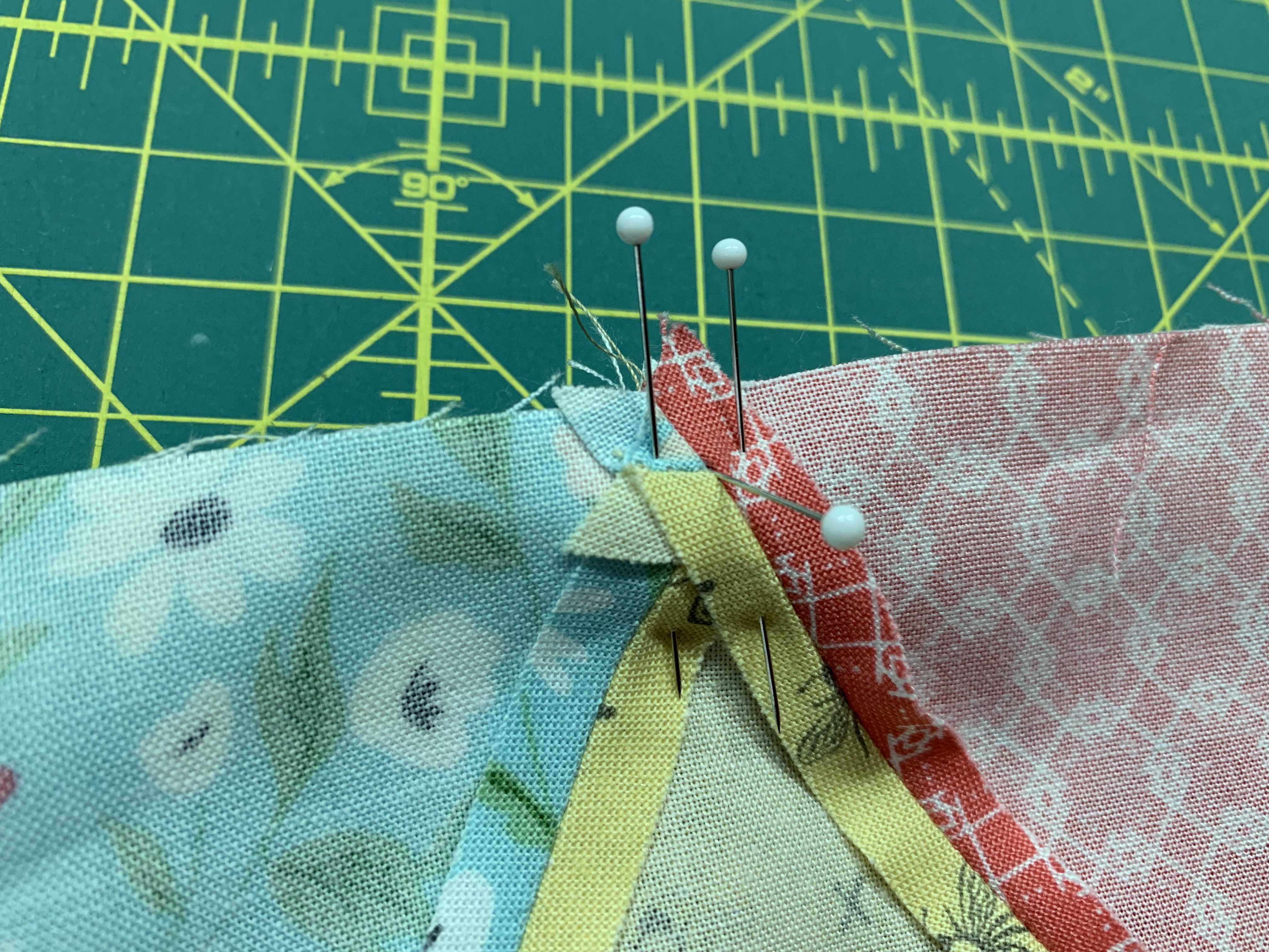 11. Stitch the two rows together. To help keep those points, just place a pin through the point on the top row and then through the point on the bottom row.