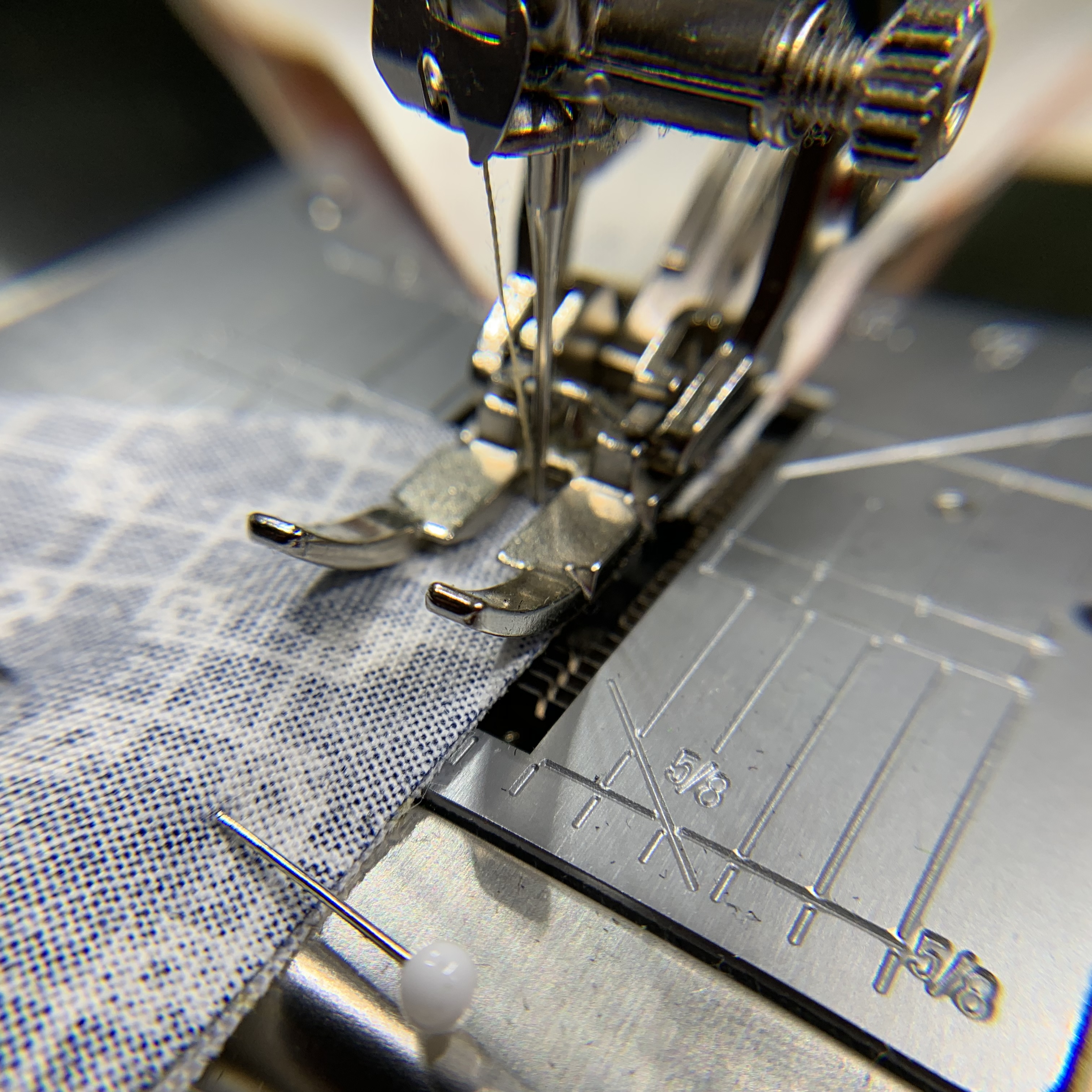 6. Stitch the triangles together using a ¼ inch seam and foot #97D with the Dual Feed engaged.