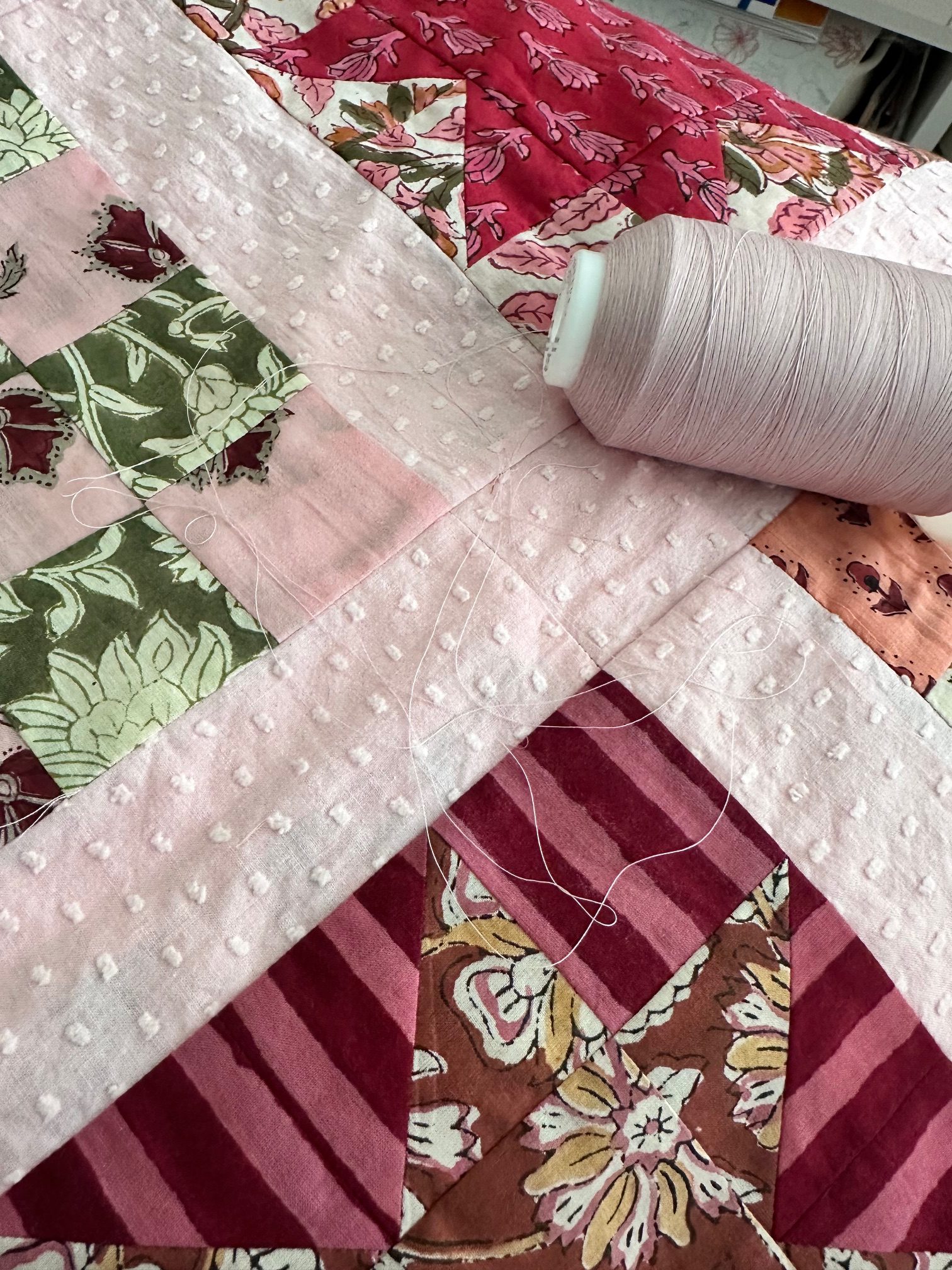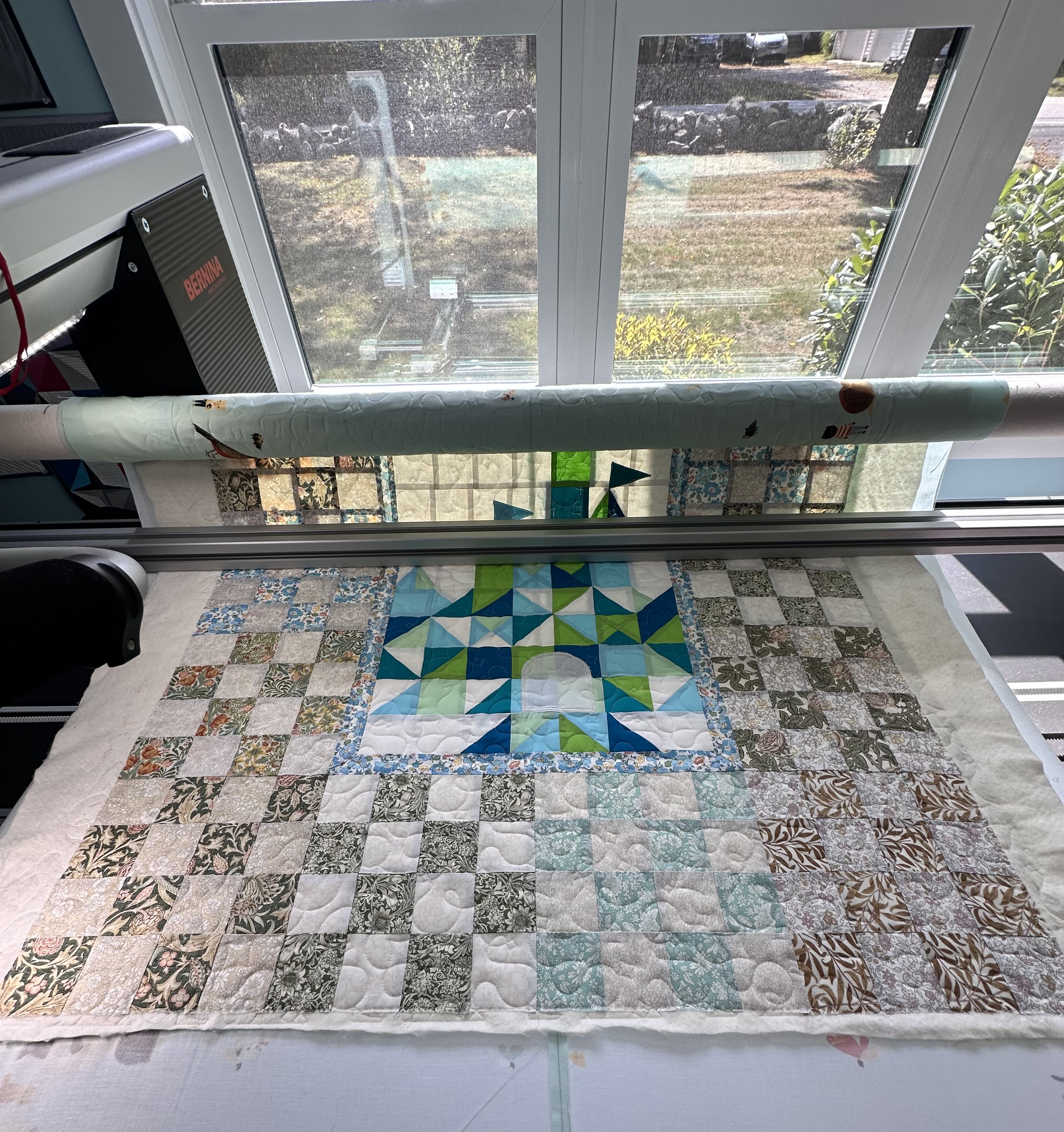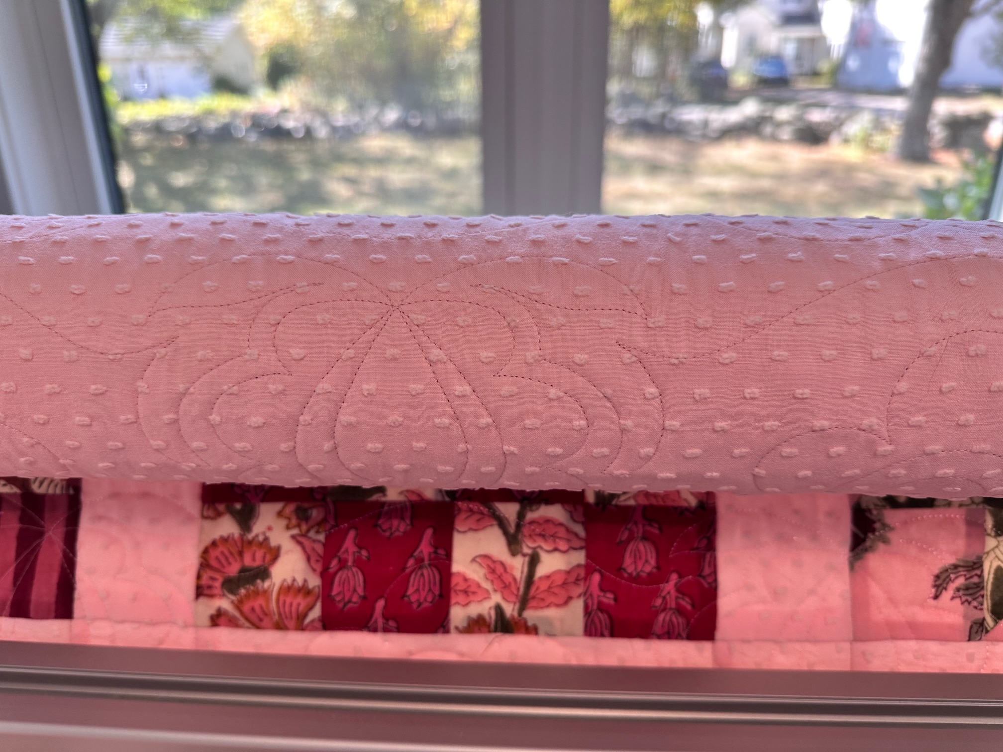 As a longarmer, I like having open communication with the quilt top maker. In quilting Jaclyn’s quilts, I texted her photos of the quilts with different thread options to get alignment before beginning the quilting. This was after an initial video conference where we discussed pantograph designs and thread colors. I want my clients to be happy, and frequent communication helps with that.