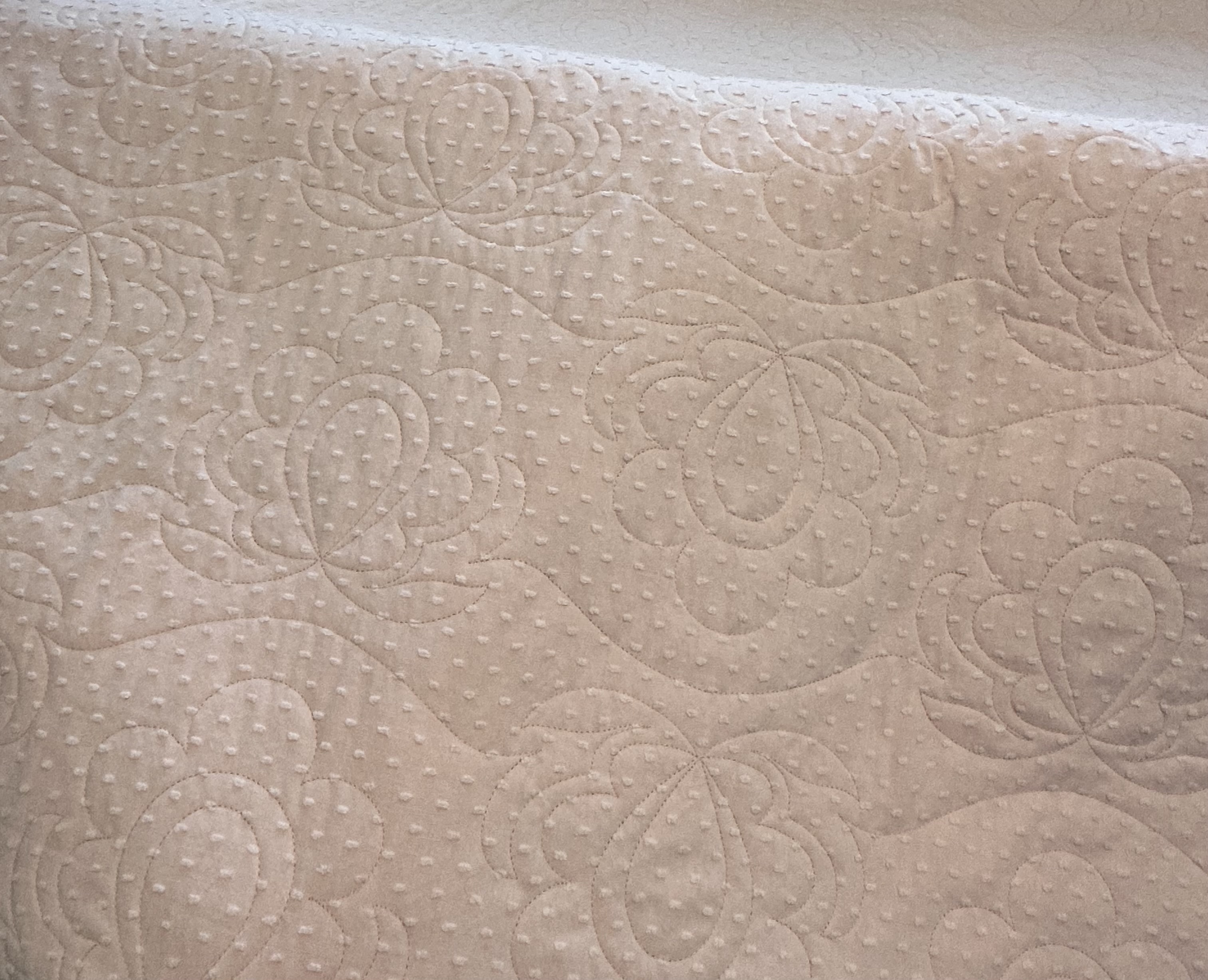 Jen: Edge-to-edge quilting is when a longarm quilter uses a pantograph to quilt and all over design on the quilt. A longarmer needs to have computerized software or an option to use a printed, paper pantograph with a laser to execute these designs. I use the BERNINA Q-matic to digitally quilt pantographs with my BERNINA Q 24.