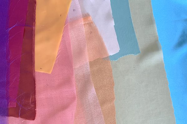 - Scraps of light fabrics such as organza, taffeta, polyester lining in light, medium and dark shades