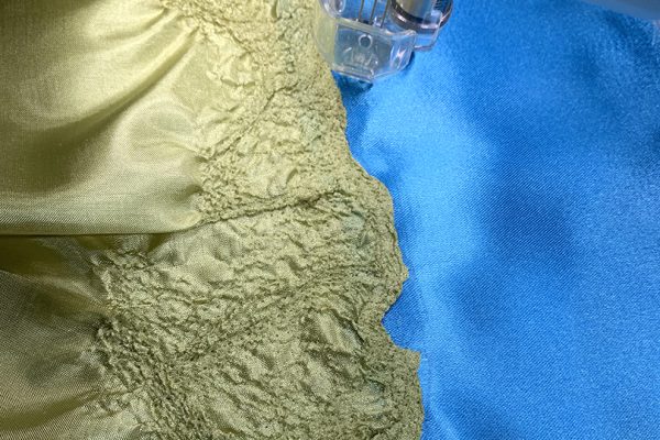 Note: All fabrics may not embellish easily. Be sure to repeat the process moving back and forth. If it still doesn’t hold, touch up those odd spots using invisible thread later.