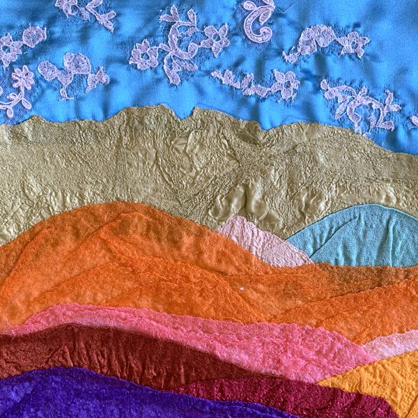 Examine each mountain to be sure all are embellished and firmly attached. If you find any loose edges, simply stitch them into place using the invisible thread.