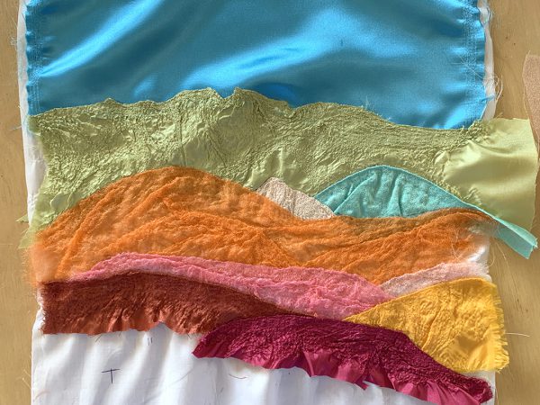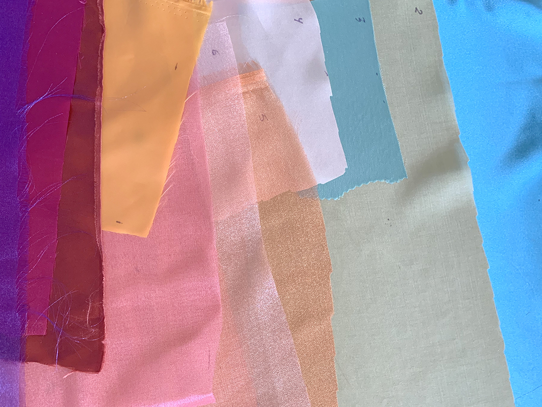 - Scraps of light fabrics such as organza, taffeta, polyester lining in light, medium and dark shades