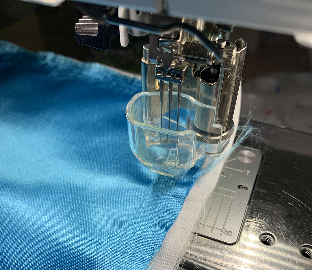 Attach BERNINA 9mm plate, 29C foot, 90/14 needle, 50 wt white thread in the bobbin, and invisible thread on top. Drop the feed dog.
