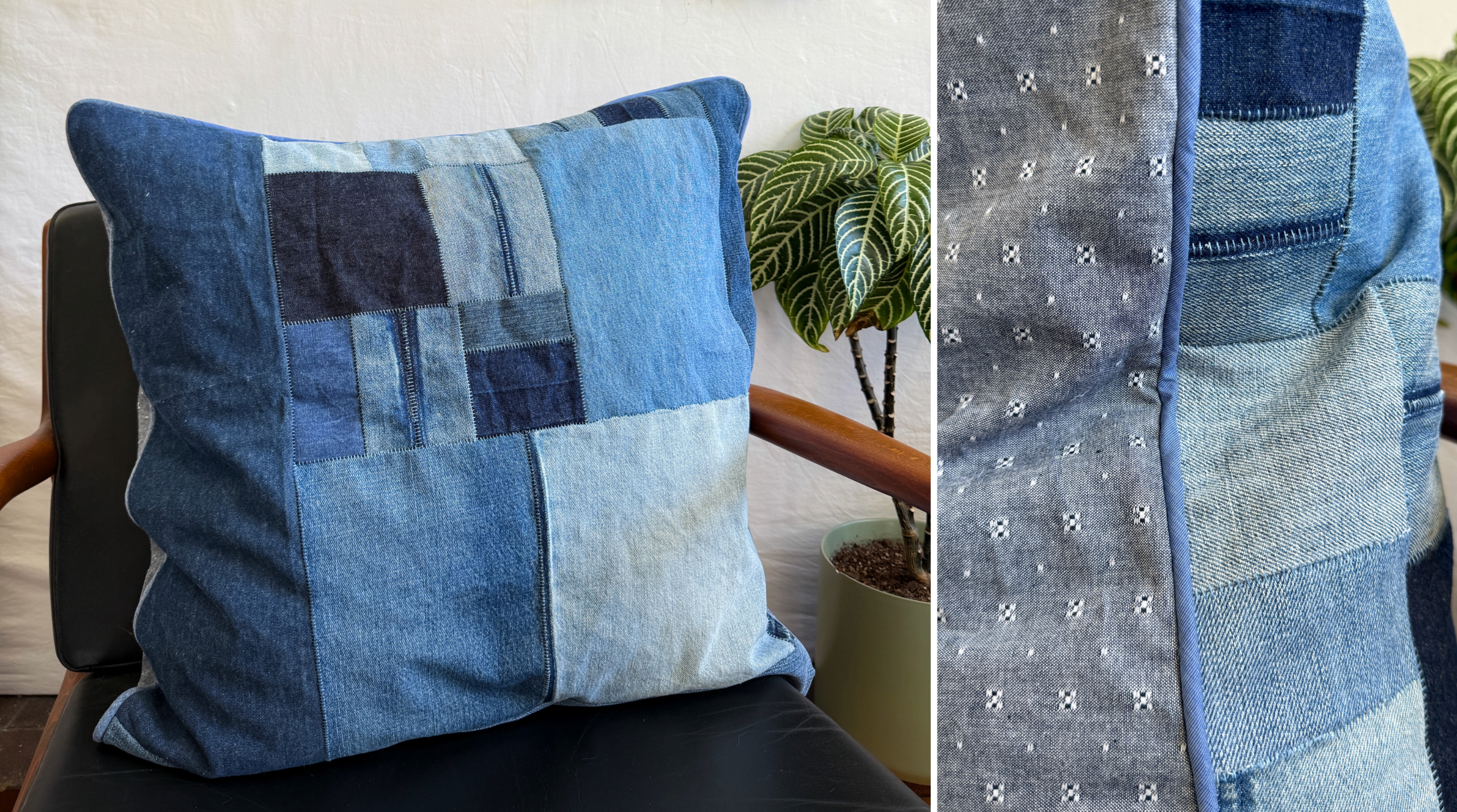 - Pillow front: patchwork, denim scraps, or any fabric you’d like