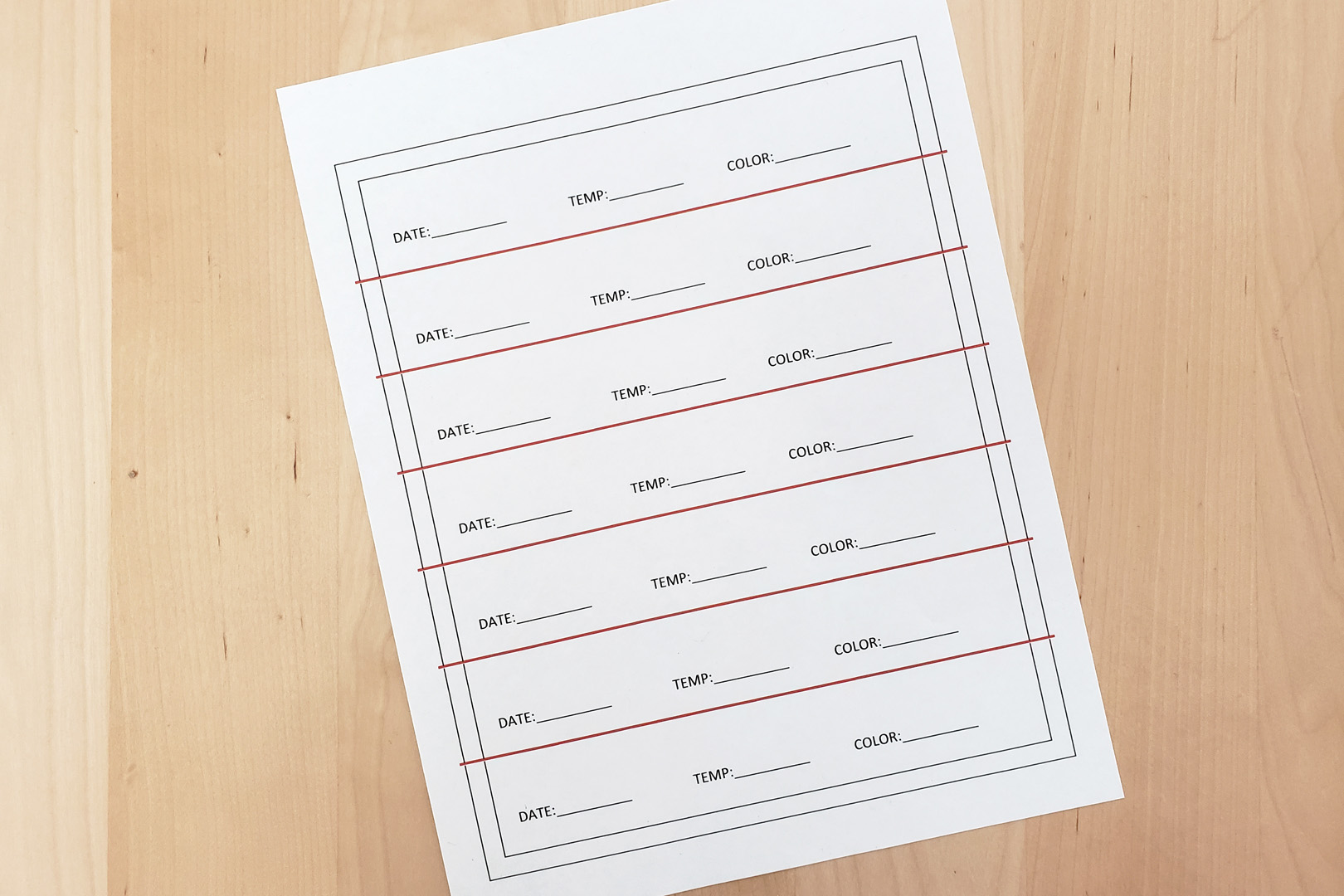 I live in Chicago, and we have a wide range of temperatures throughout the seasons. We can have temperatures over 100° and temperatures below 20°, but not that often. I decided to make my temperature chart beginning with 20° or below, and end at 100° or above, organized in 5° increments. You may have to fool around a bit to find the perfect temperature range for your specific climate. If you live in a place where there isn’t as much range in temperature, try making smaller increments in degrees like a 2- or 3-degree increment.