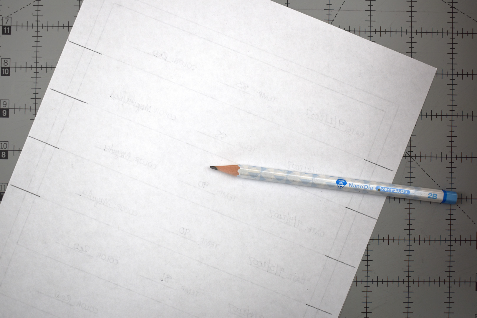 On the back side of the printed paper pattern, trim extra paper on all sides with a ruler and rotary cutter.