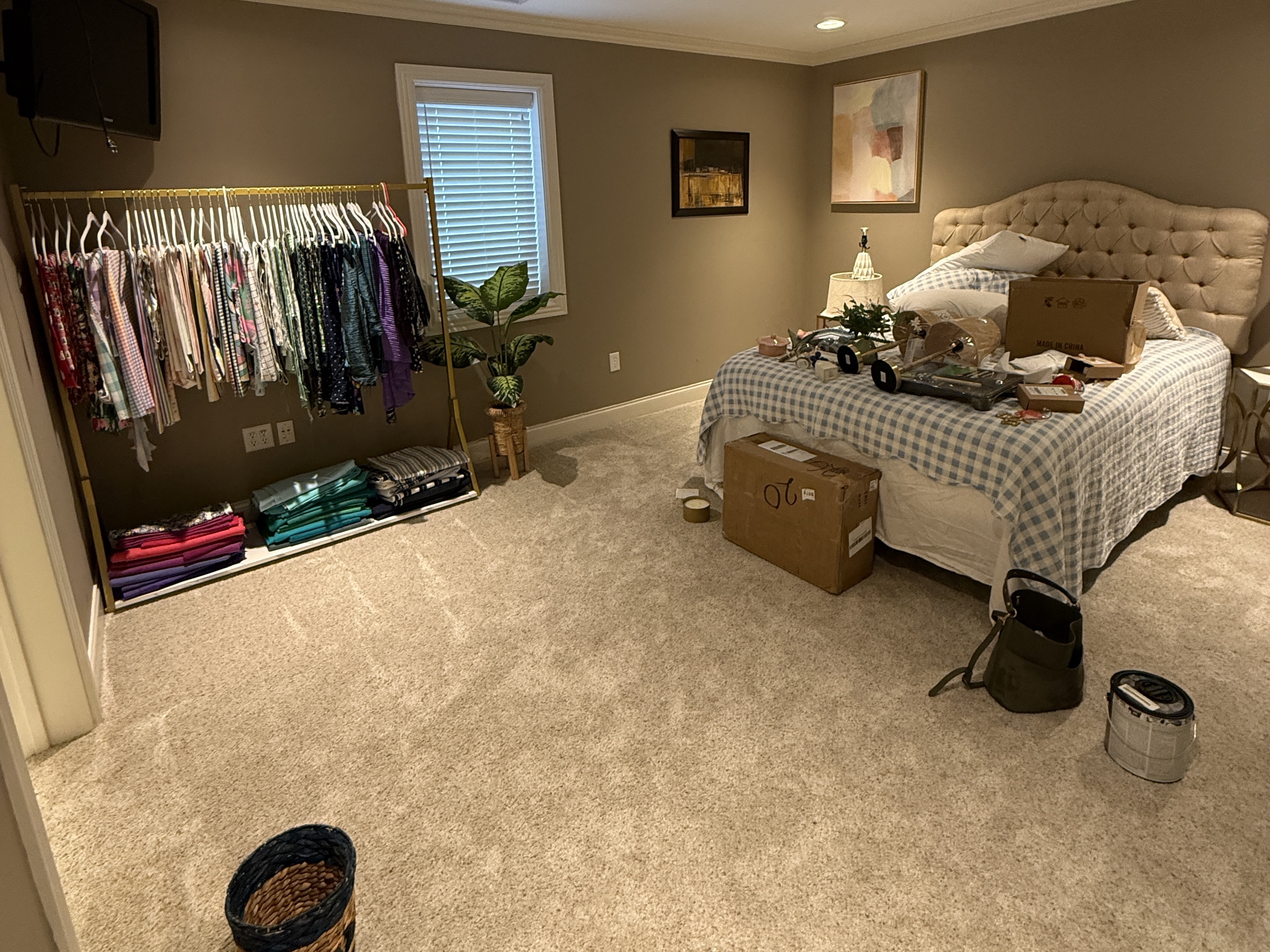 This year, I was finally ready to tackle the guest bedroom! To be honest, I’ve been avoiding this space for far too long. It’s located in our basement away from our most lived-in rooms. Out of sight, out of mind. But we often have family visiting, and I wanted to turn this room into a little haven for our guests. So, I recruited one of my friends to help me with a complete overhaul. We were able to take it from this dark dungeon…