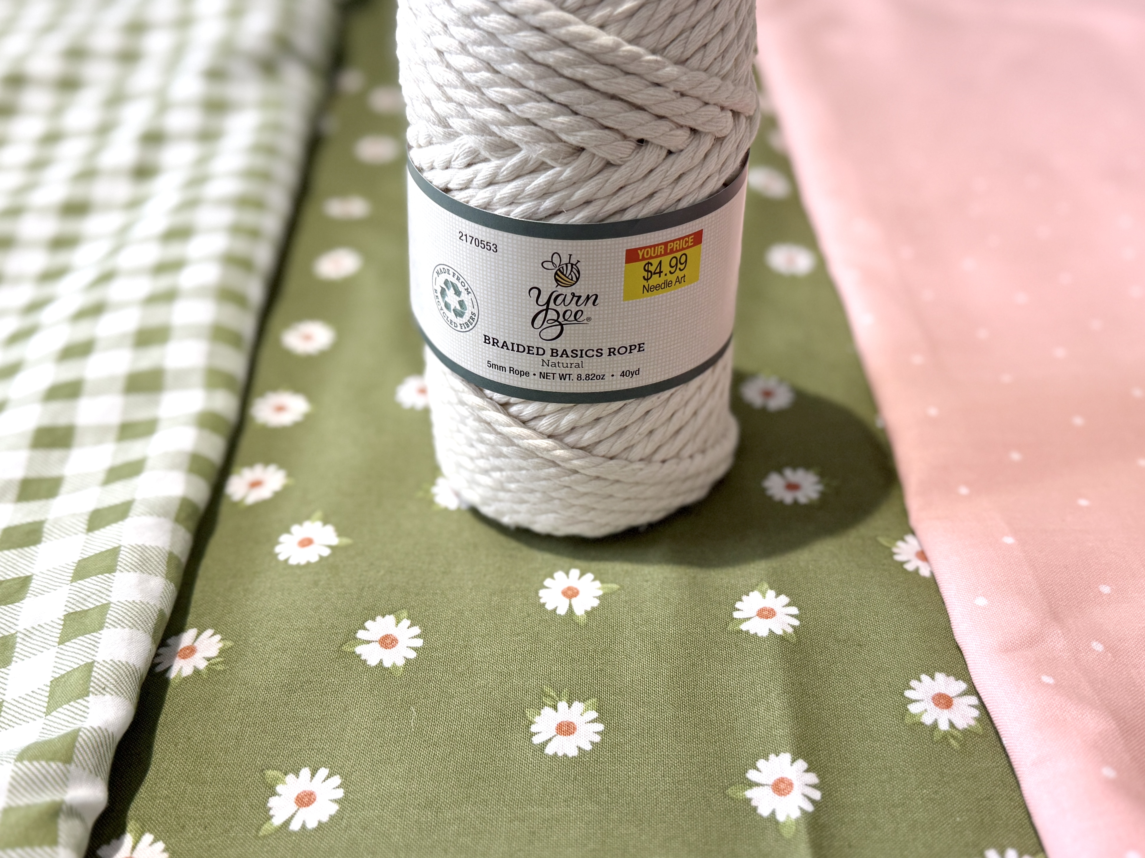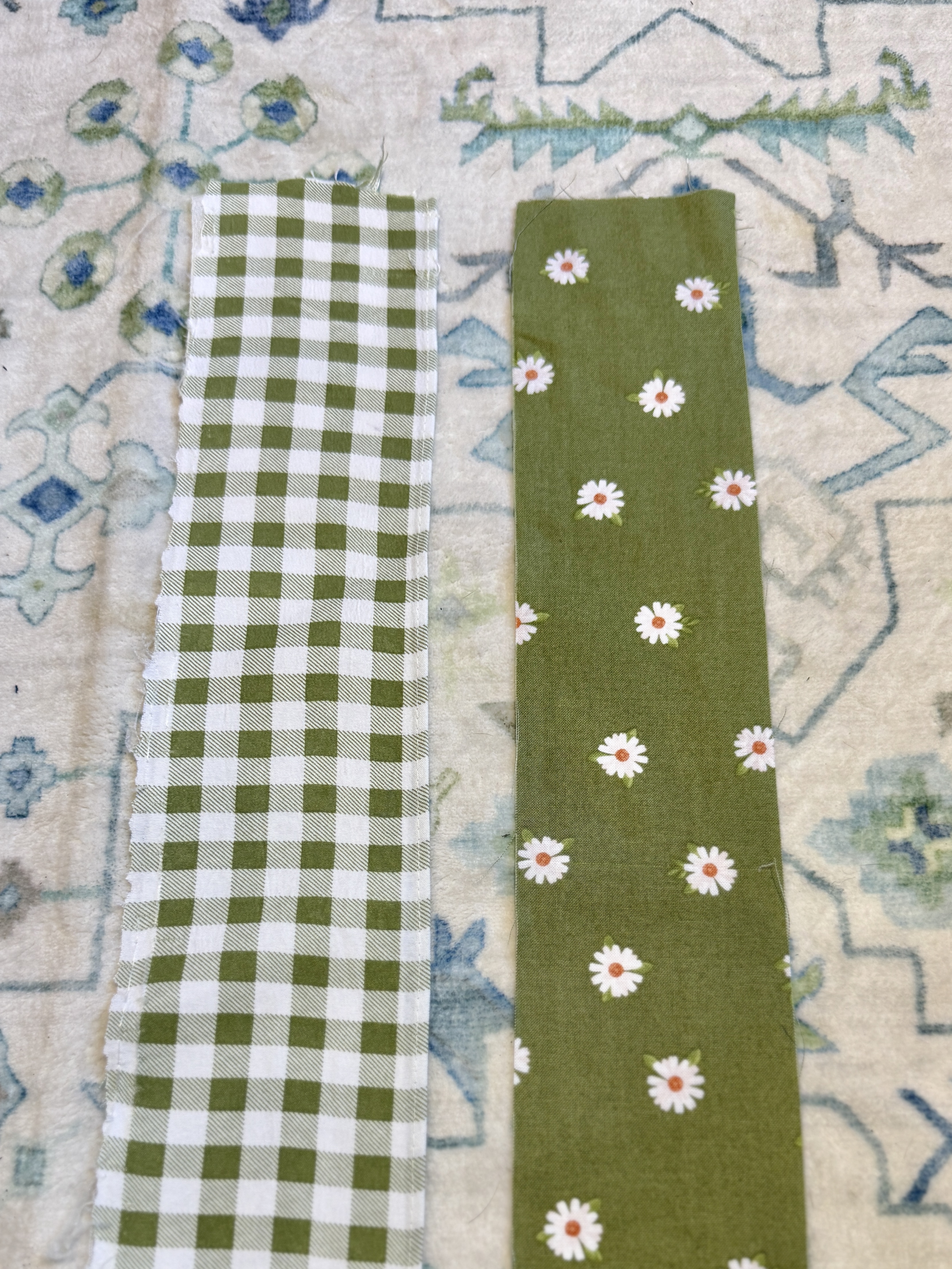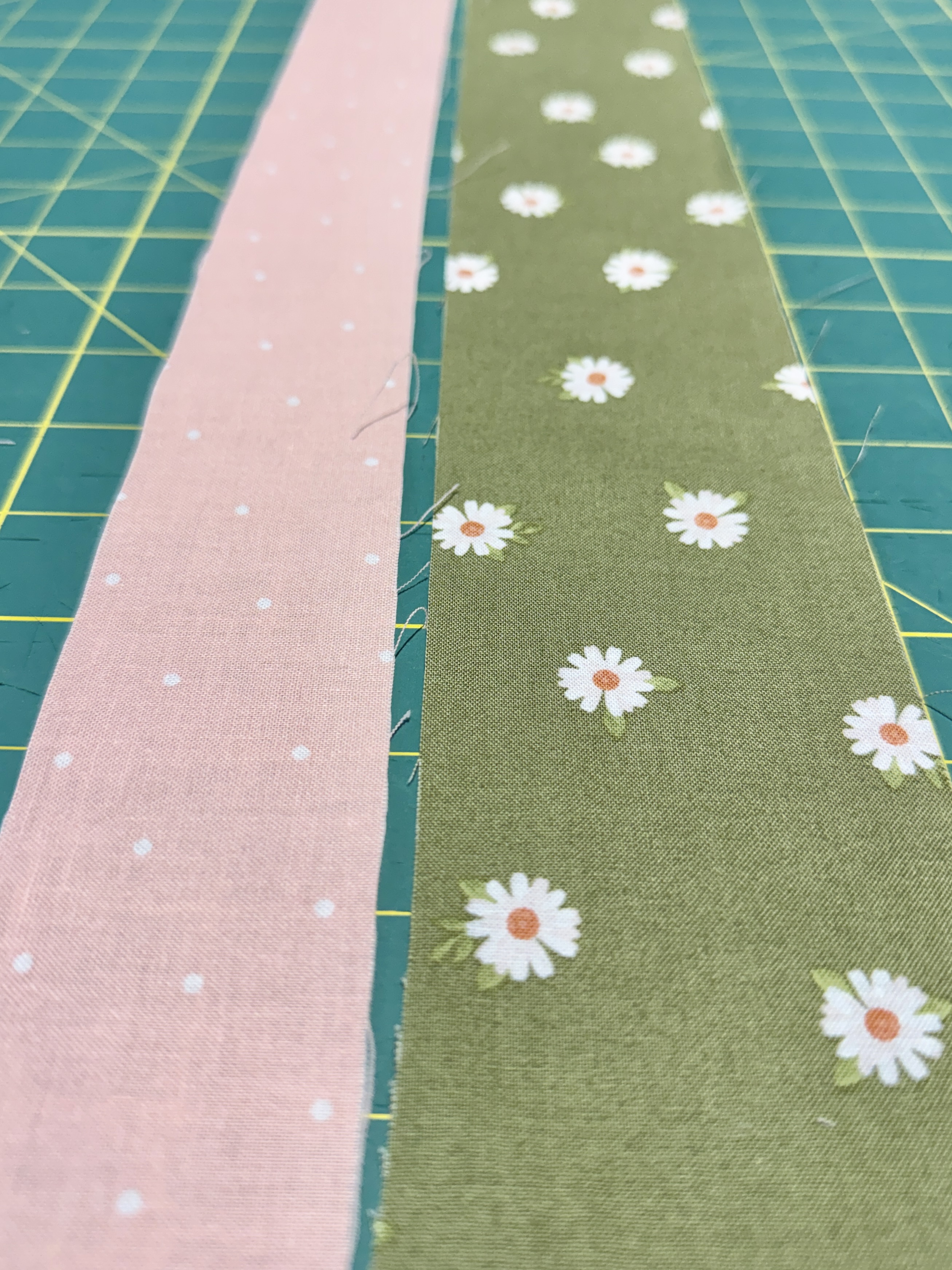 Off I went to search for a coordinating fabric and materials to add a piping trim. As soon as I saw this green floral fabric, I knew it was perfect! I also grabbed some 5mm cording and pink fabric to wrap it in. I am always fond of a surprise pop of print hidden within something handmade. And there’s nothing quite like a crisp piping to make something look expensive.