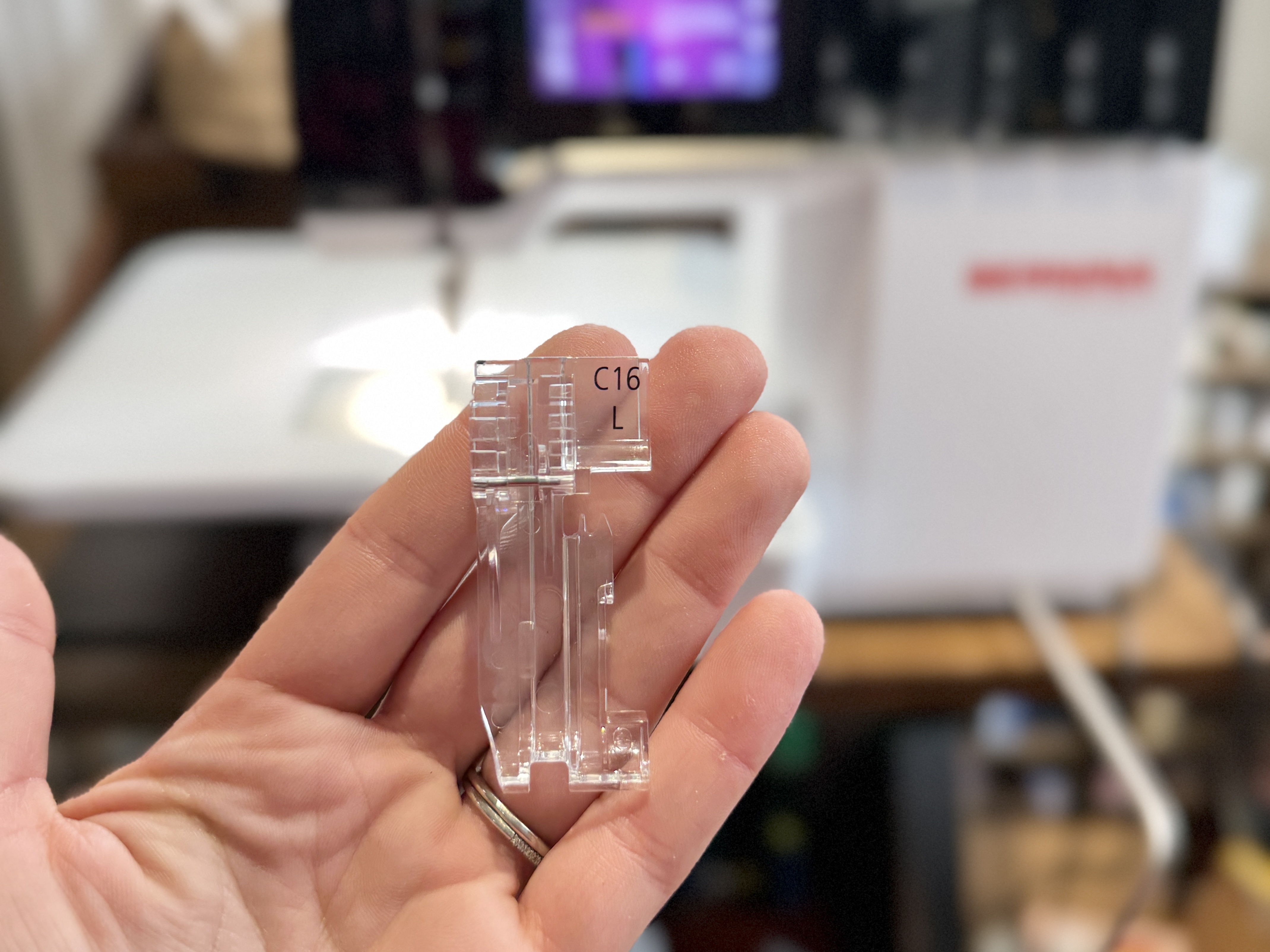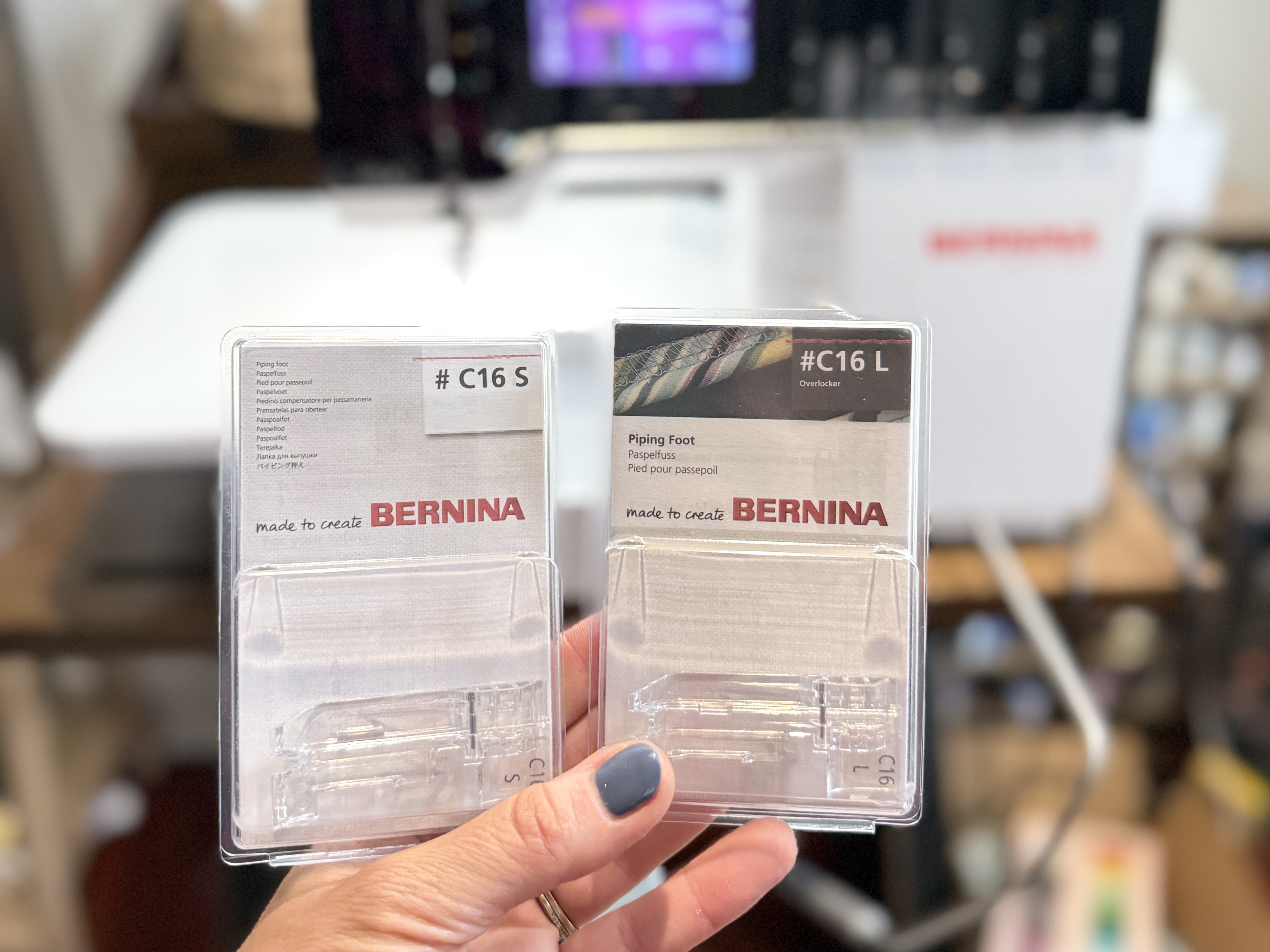 There are actually two piping foot sizes you can choose from for your L 890 – the S and the L. The S is for sewing piping onto lightweight fabric with a max diameter up to 3mm. The L is for medium to heavyweight fabric and up to a max diameter of 5mm. For this tutorial, I will be using the size L.