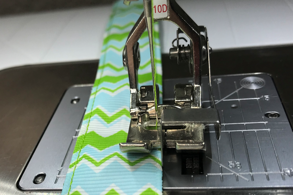 The two presser feet I used for this project are ones that I turn to almost every time I sew. Edgestitch Foot #10/10C/10D is perfect for stitching the ribbons back to back. The center guide makes it easy to stitch perfectly parallel to the edges of the ribbon.