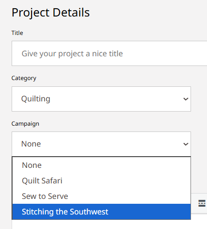 If you don’t have social media, you can upload your photo to the WeAllSew Community Section. Don’t forget to select “Stitching the Southwest” in the drop-down list under “Participate” when uploading to the community area: