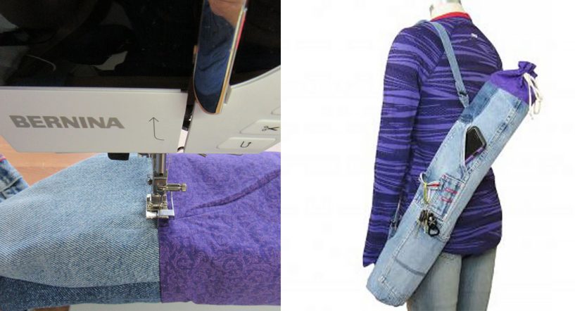 Learn how to make an upcycled jeans yoga bag! Perfect for transporting your yoga mat to class with handy pockets for all your gear. … More
