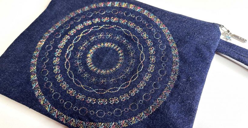 Sew a denim clutch bag and use metallic thread to embellish it with circular decorative stitches perfect for the Holidays! … More