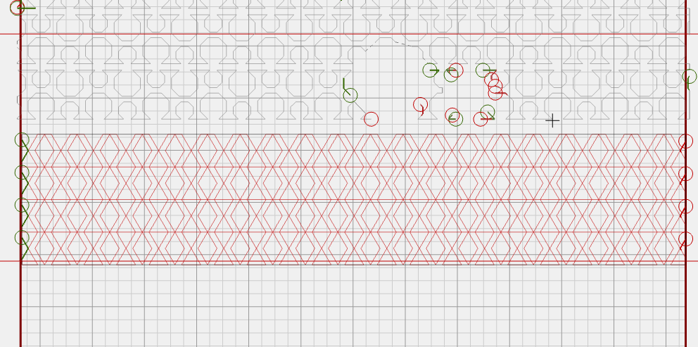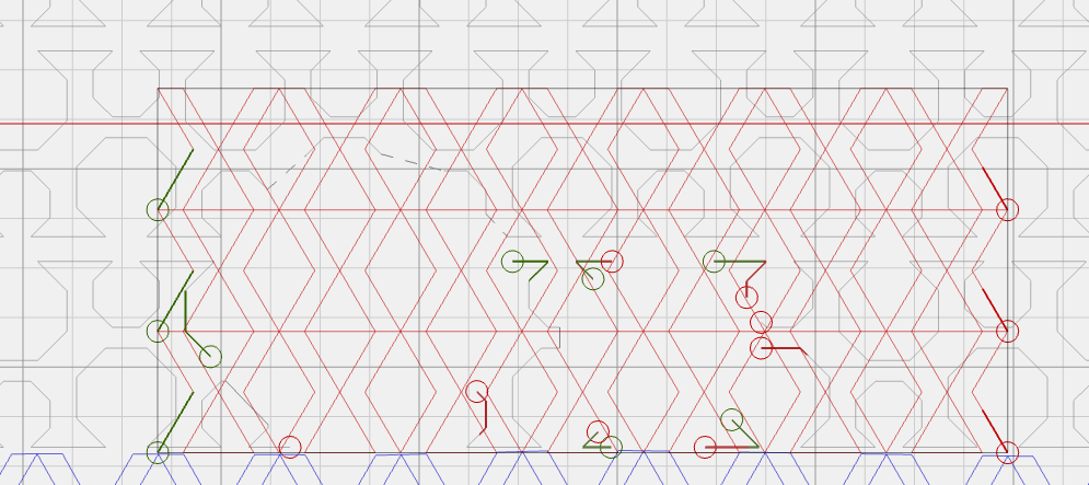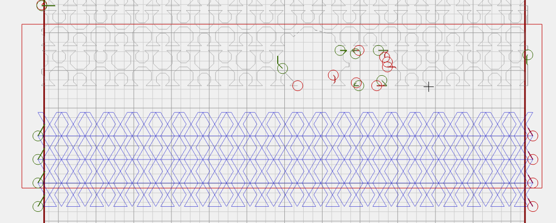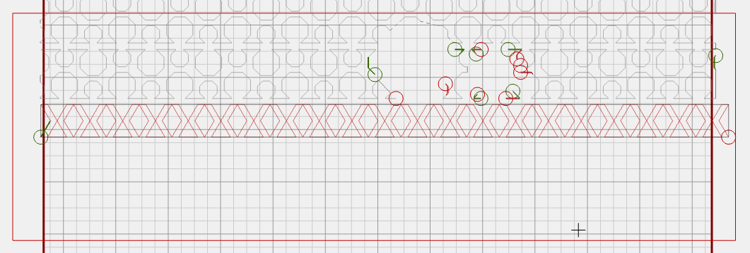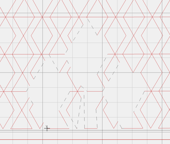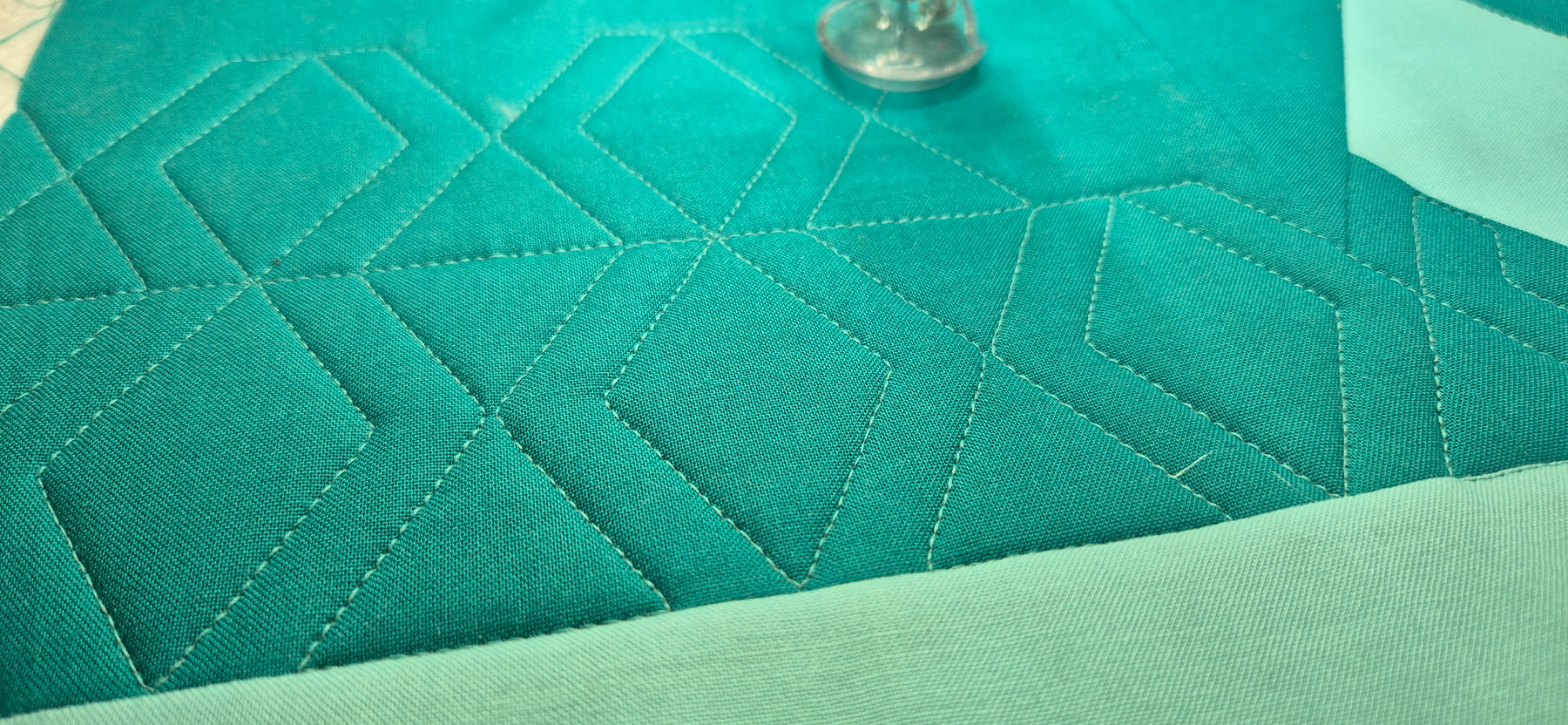 Now everything is set, you can press start. When all is well the Q-matic will stitch nicely along the bottom edge of the design, leaving out the diamond shapes while also filling the octagons.