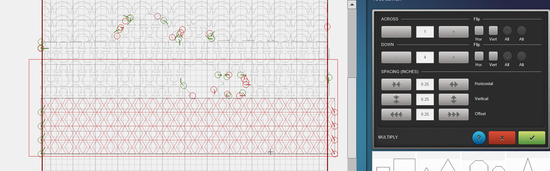 Use the Multiply tool to create four rows. We are first only going to create the design for a rectangle. We will add the pattern inside the octagons later.