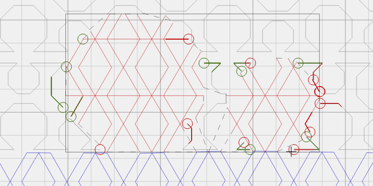 Use the Trim tool to trim the design on the outside of the border of the quilt. The border of the quilt is the red box that appeared after you entered the measurements of the quilt for row 1.